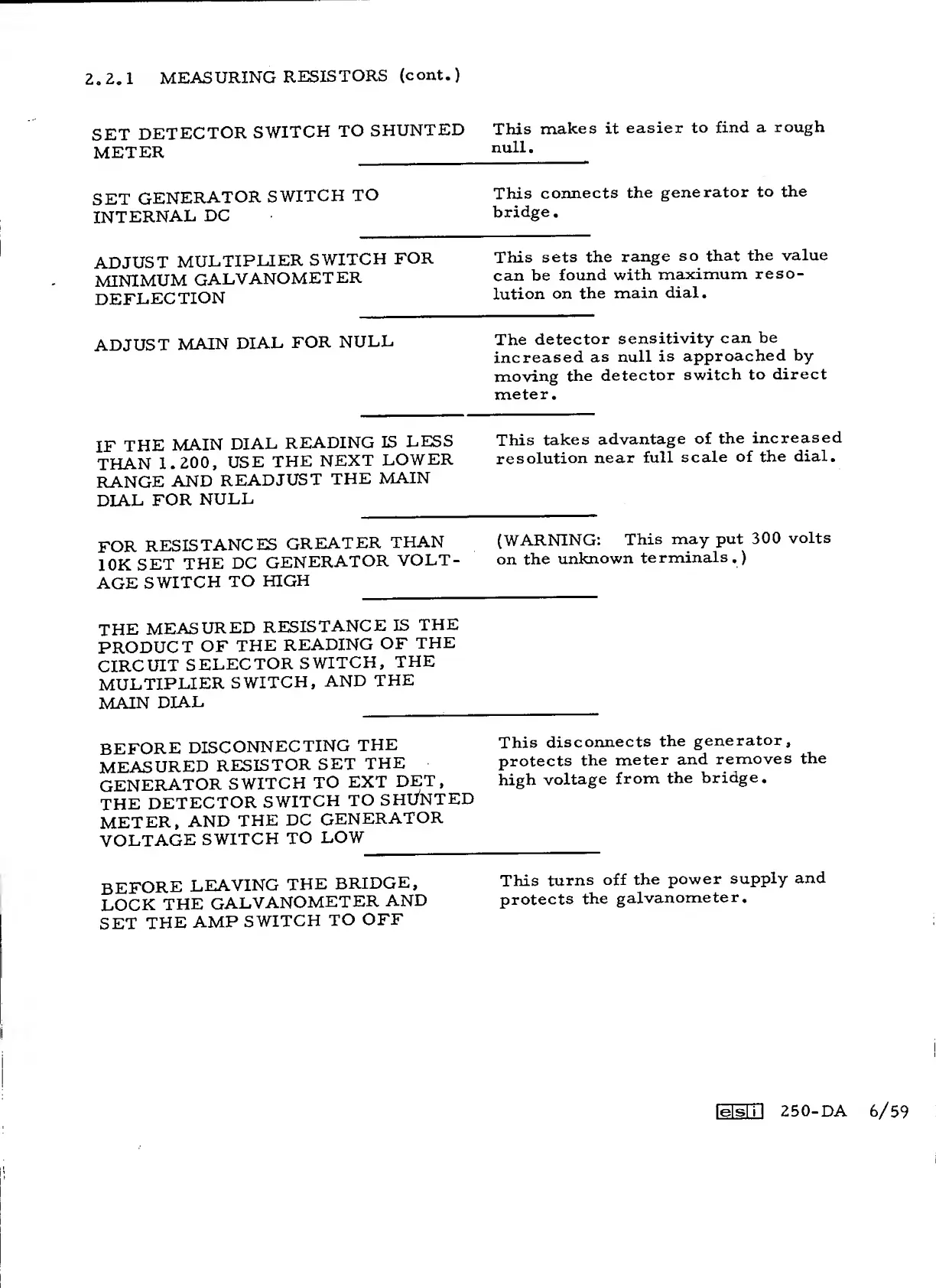 ESI 250-DA - Refining Resistor Measurement and Calculations