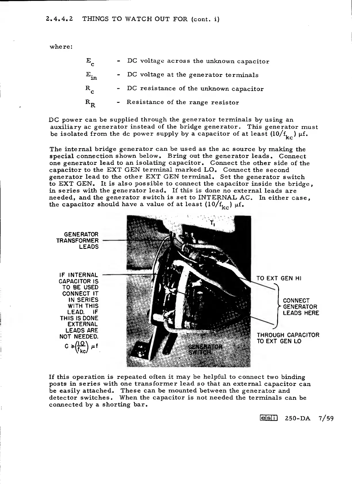 ESI 250-DA - DC Capacitance Measurement Precautions