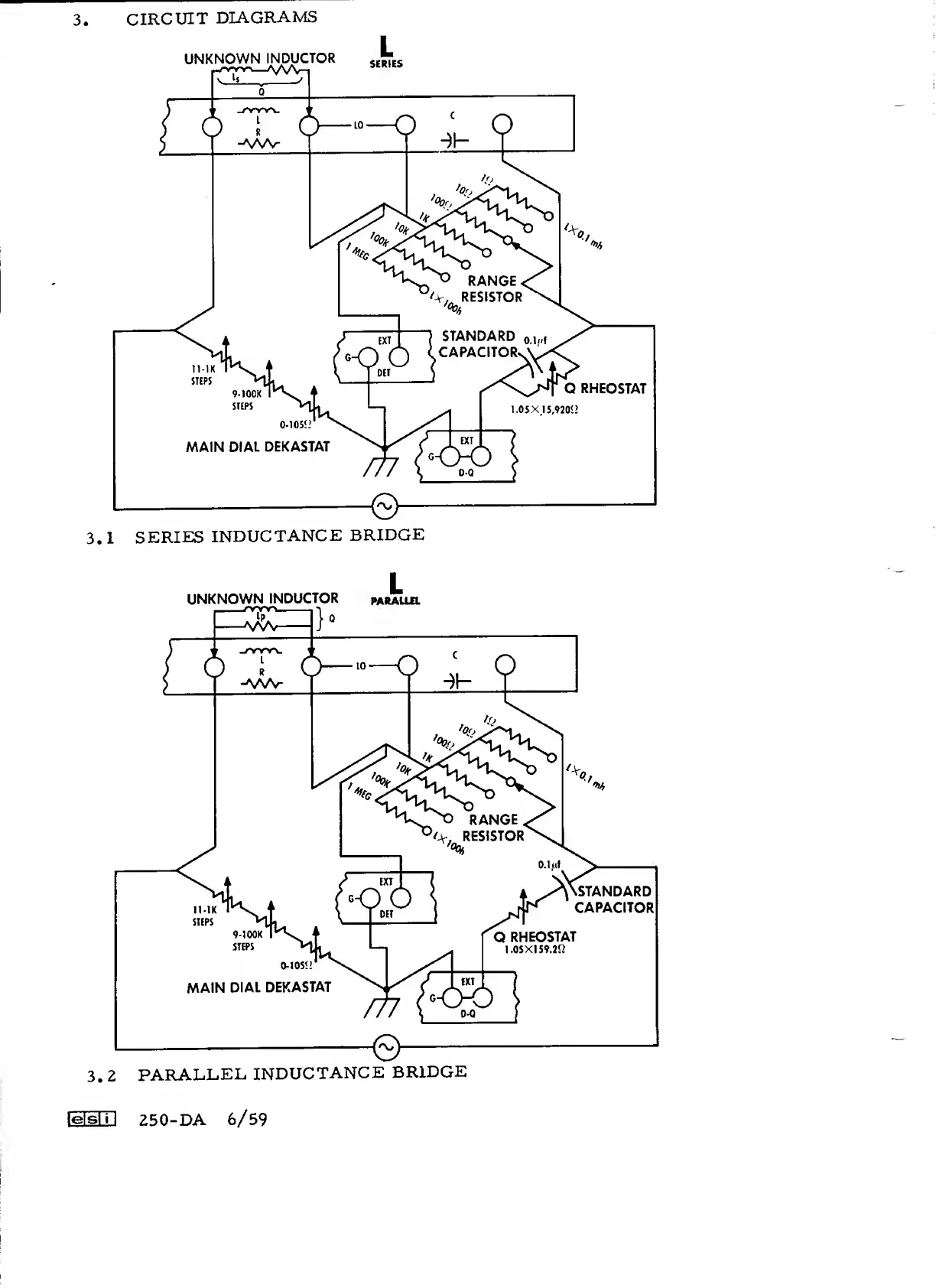 ESI 250-DA - Circuit Diagrams for the ESI Model 250-DA; Circuit Diagram: Series Inductance Bridge; Circuit Diagram: Parallel Inductance Bridge