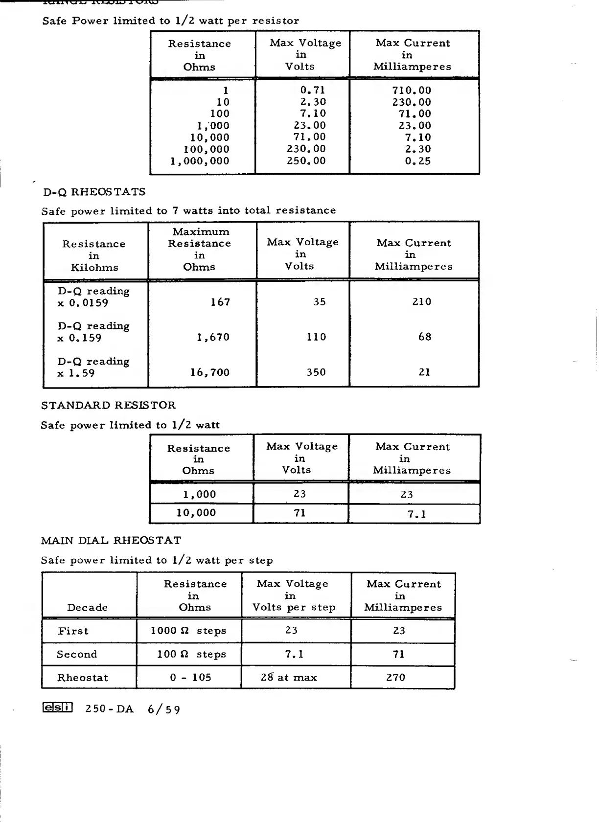 ESI 250-DA - ESI Model 250-DA Component Power Limitations