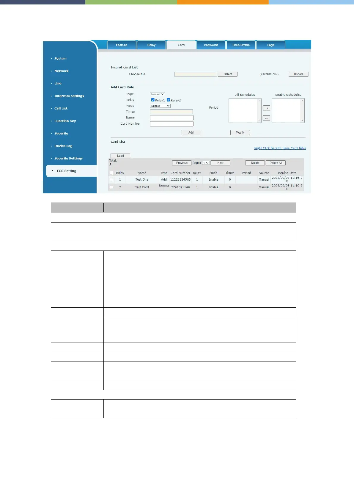 EGS Setting >> Card