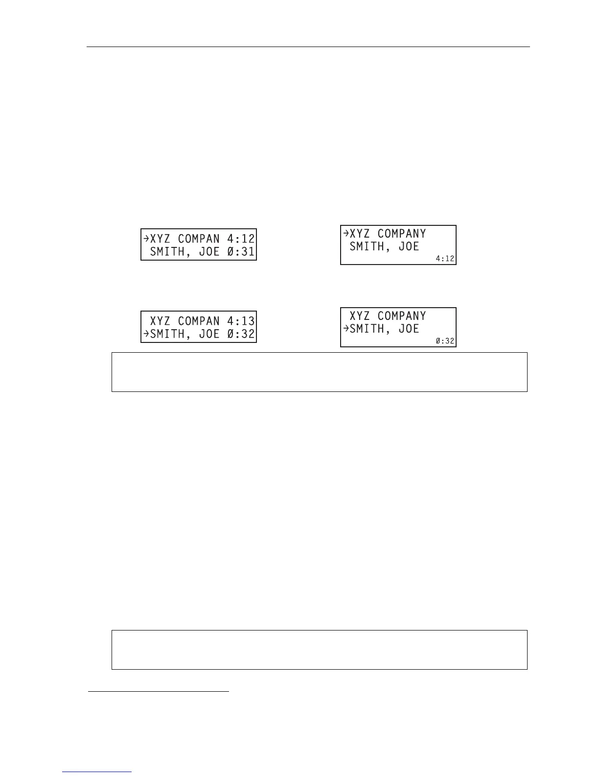 name or number of the call waiting along with the duration of that call. The arrow on the display will move
