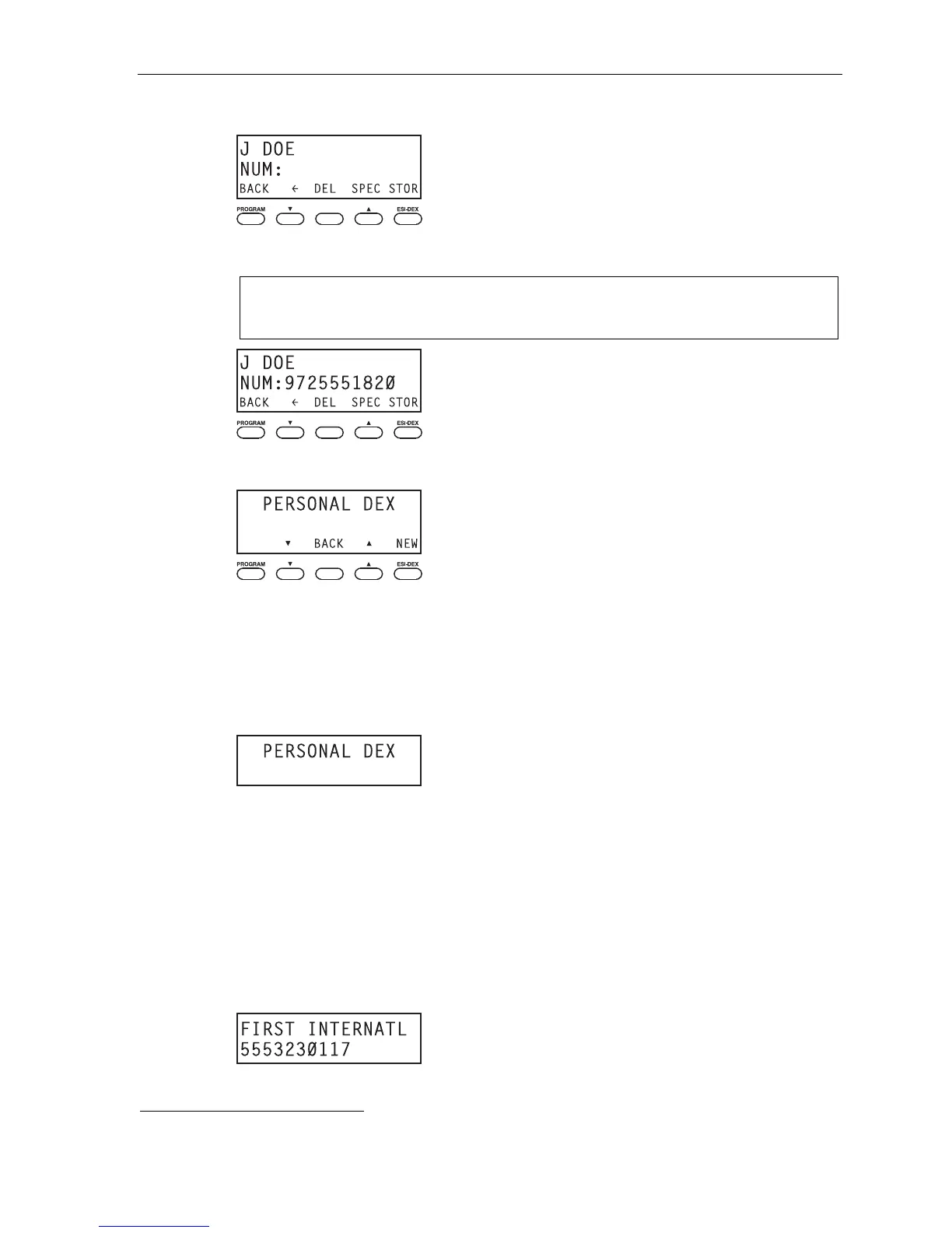 1. While your station is idle (or just after receiving dial tone), repeatedly press ESI-DEX to select the