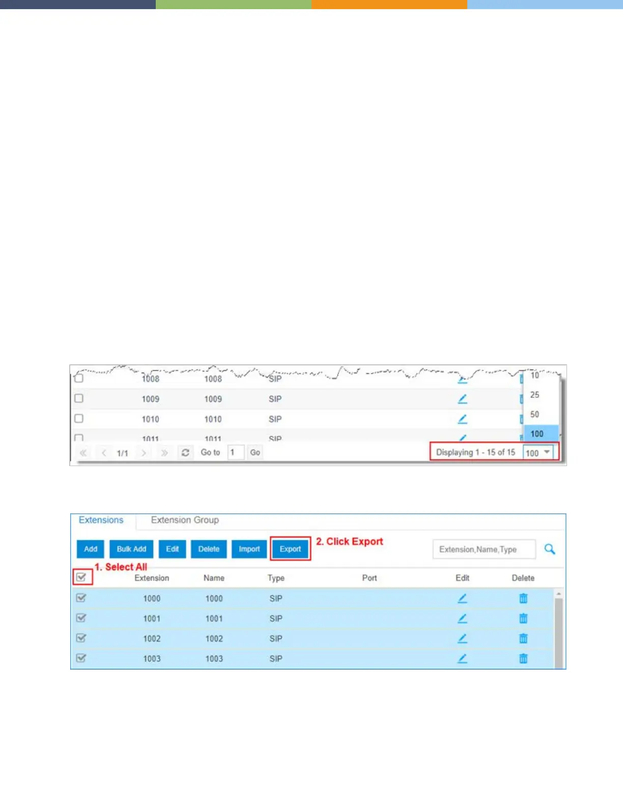 extensions can be exported at once. If you have more than 100 extensions, you need to repeat steps 1 to 3 to