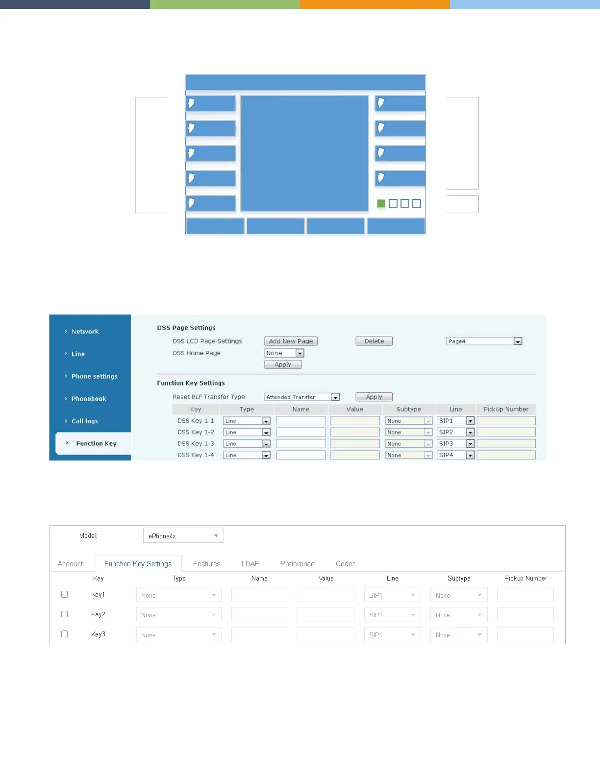 The bottom right DSS Key on each page of both phones is a pre-programmed that enables you to view additional