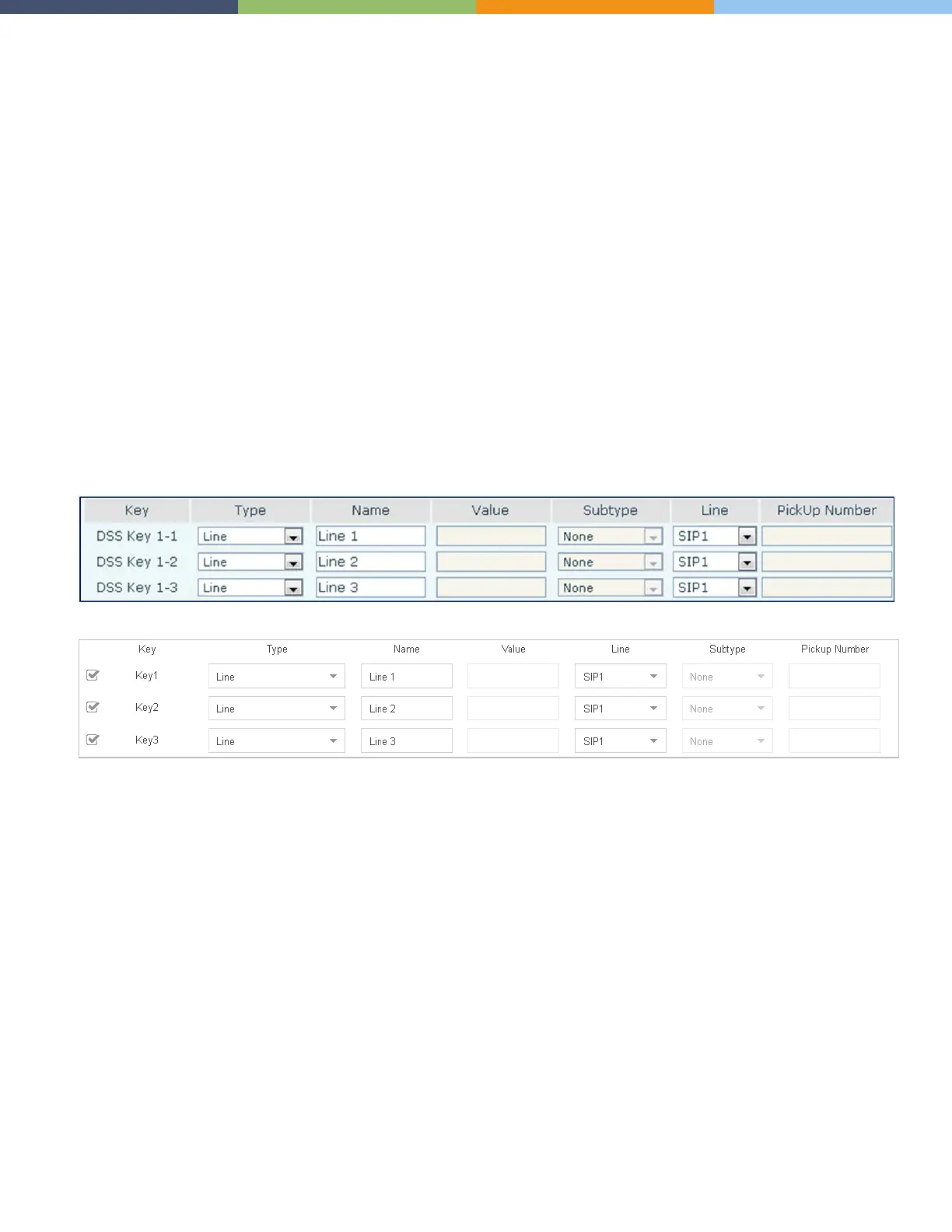 Programming line keys to a specific SIP Account to make and receive calls.