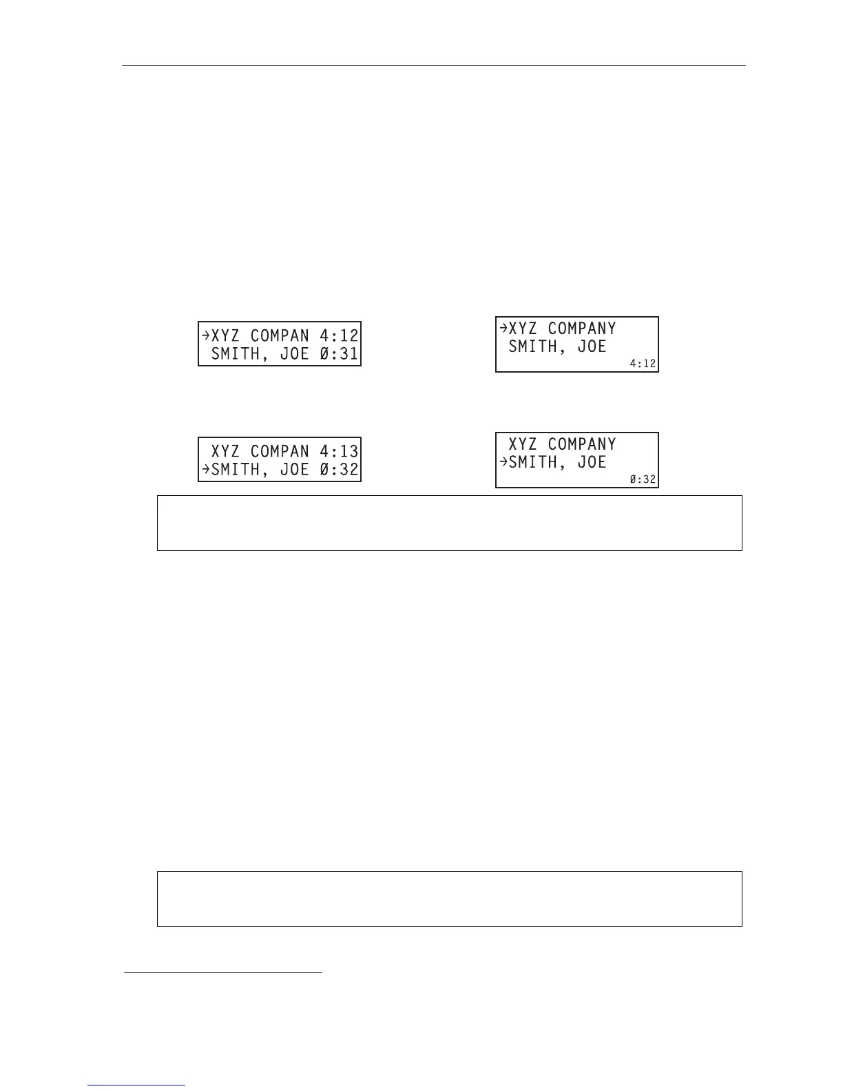 name or number of the call waiting along with the duration of that call. The arrow on the display will move