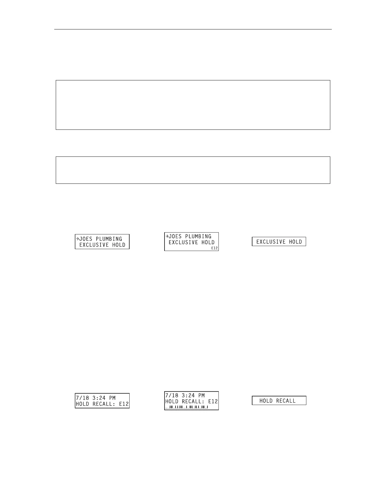 where the call was placed on exclusive hold will display an “E” next to the line (identified by