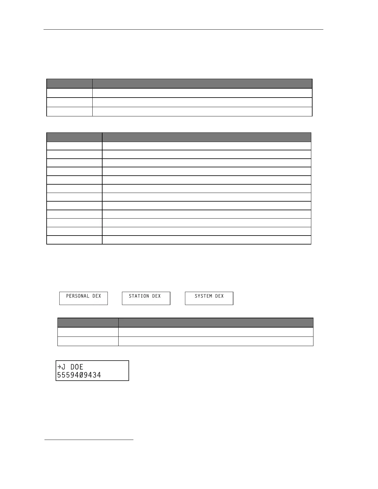 Station Dex All station, department, and guest mailbox names programmed by the Installer