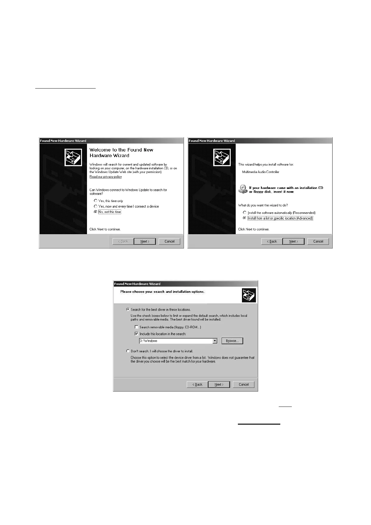 New Hardware Wizard window will appear as seen on the following picture on the left.