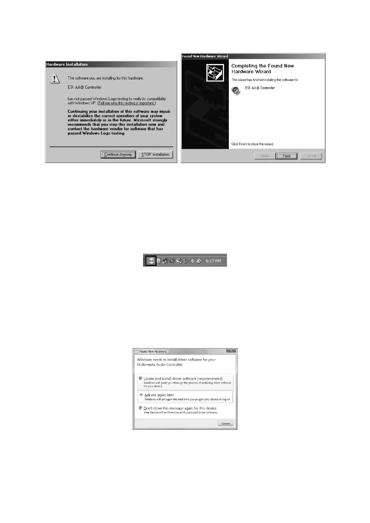 the exact steps one more time, this time to install the ESI Juli@ Audio device. After that is finally