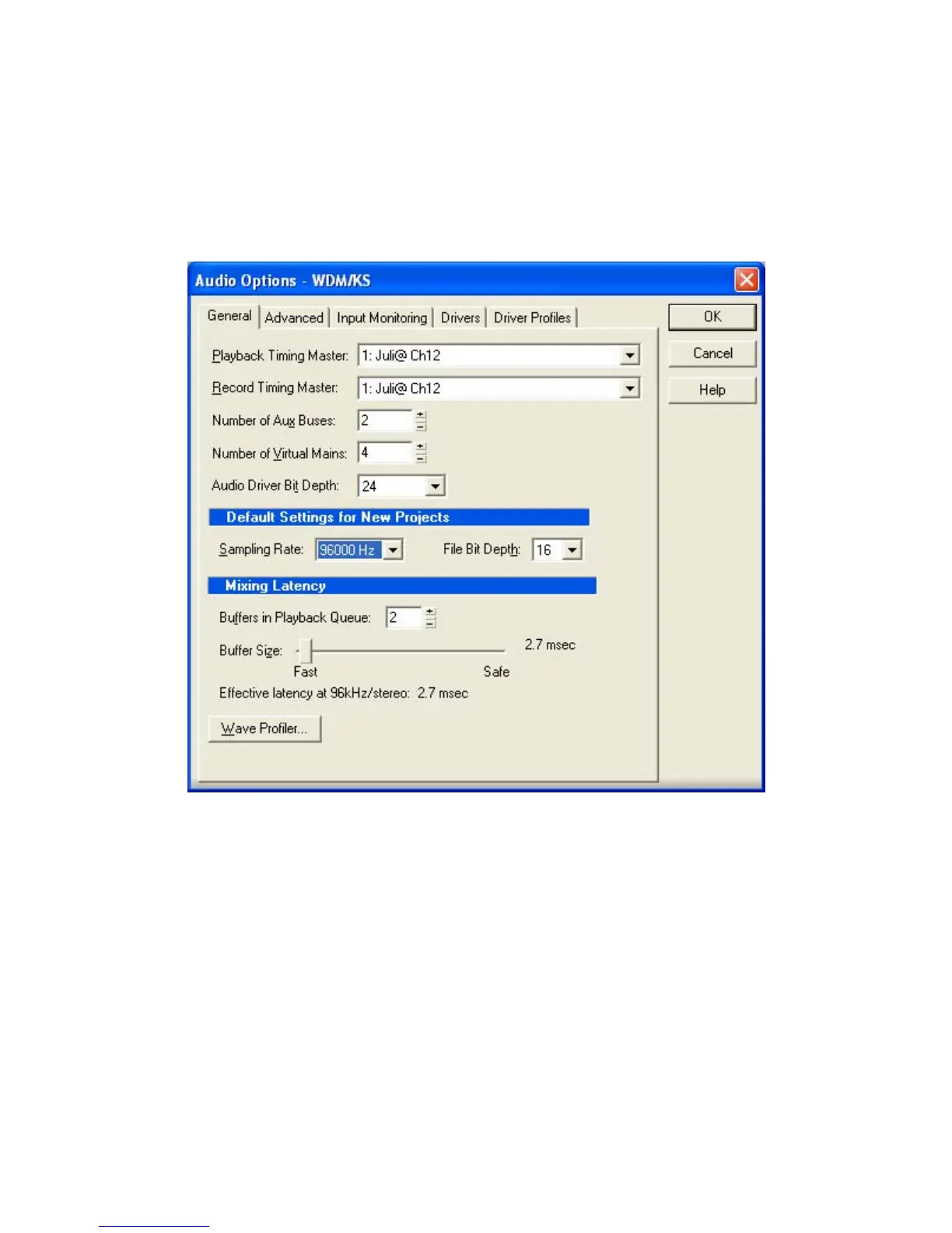 There are few steps to configure SONAR, which supports either WDM or ASIO drivers. After