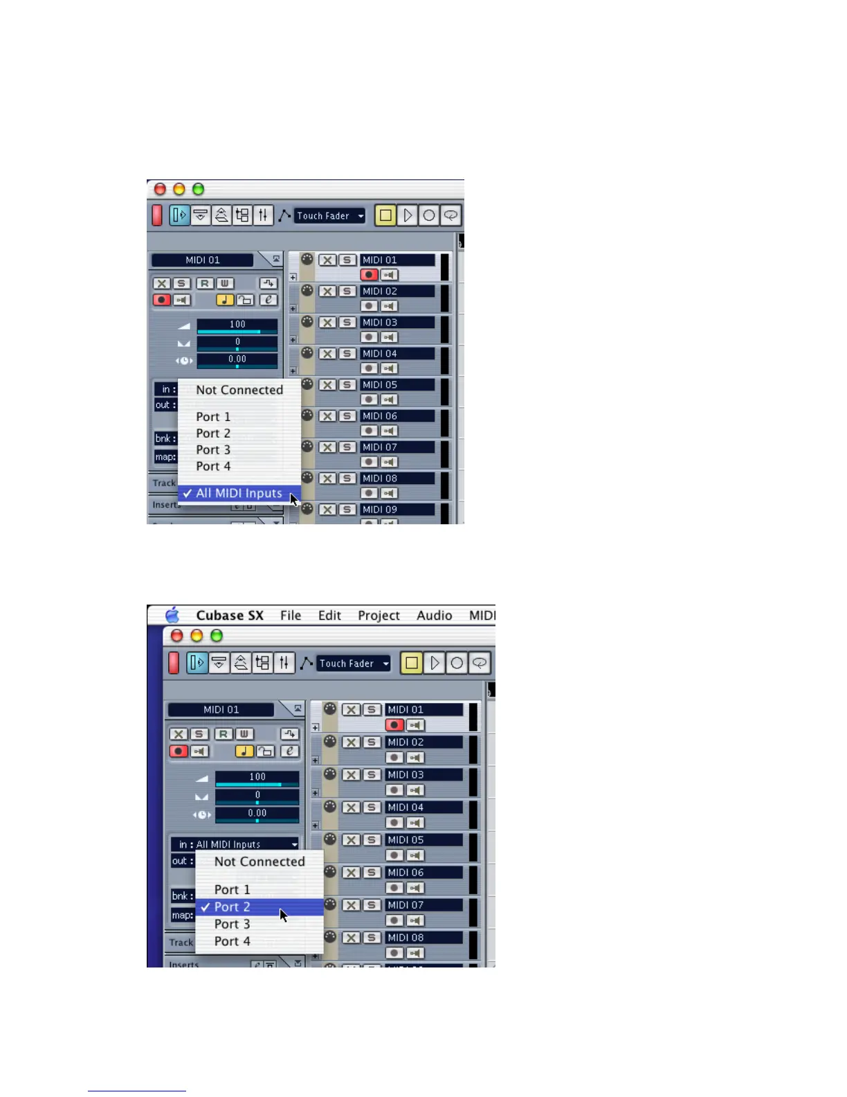 In this section, you can choose a port (or all ports) for MIDI input.