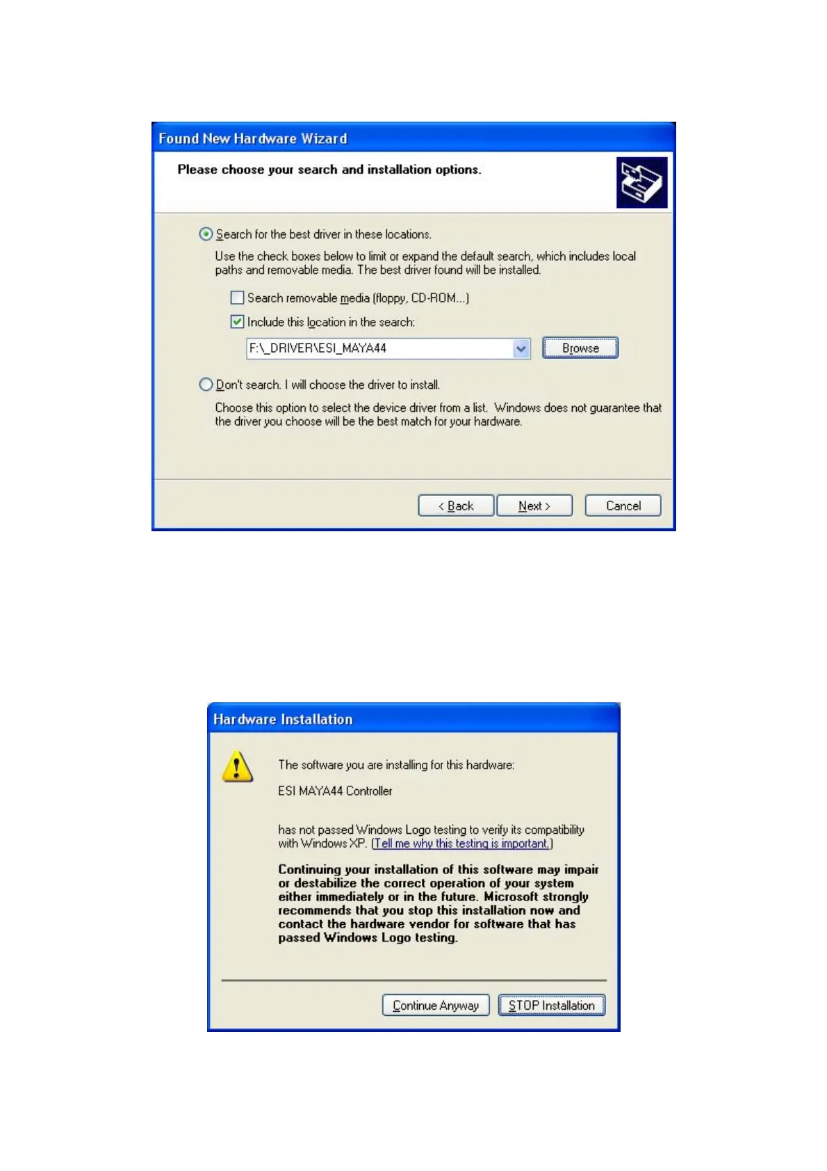 With Windows 2000 and XP installations, a message might appear stating “The software has not passed