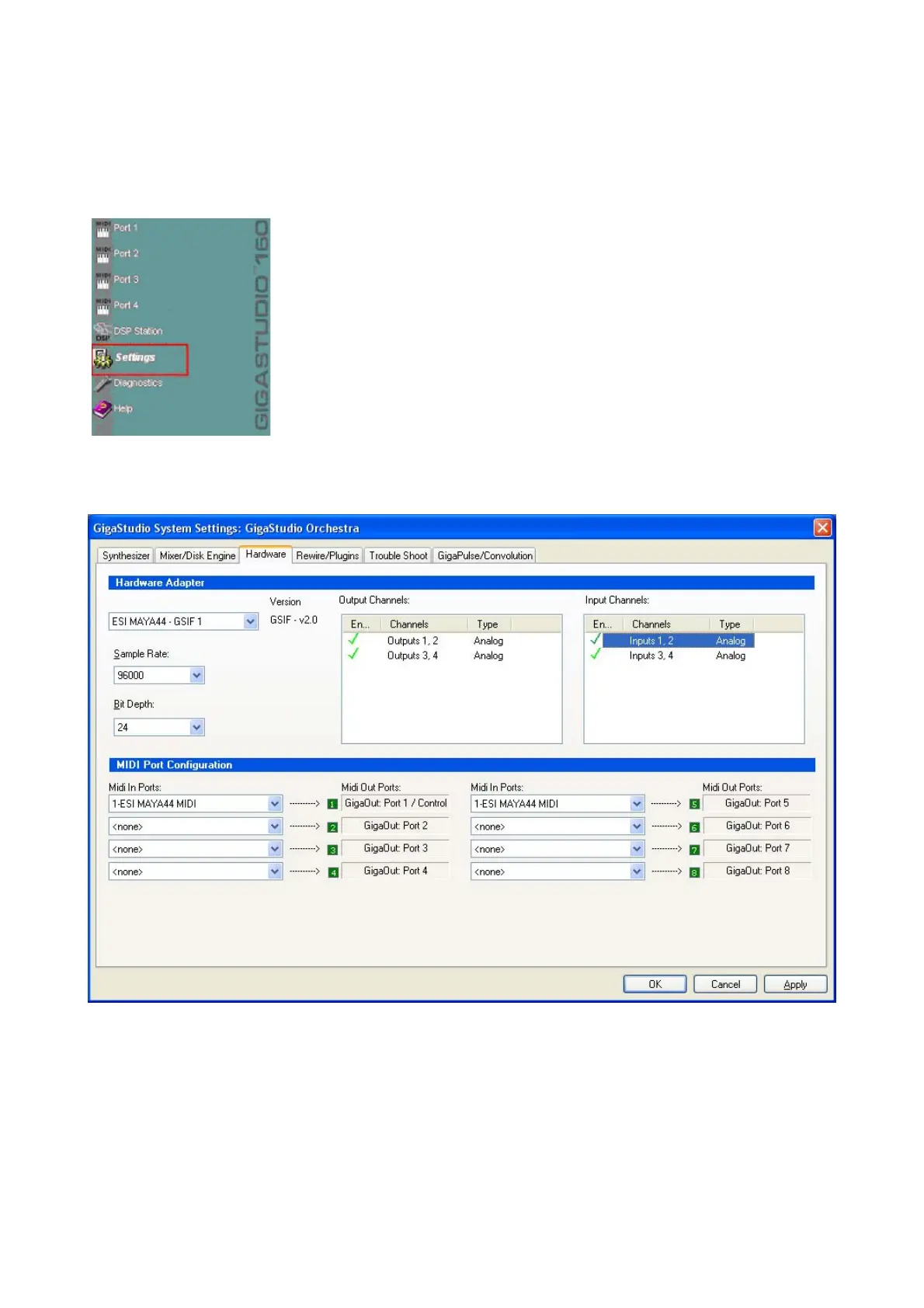 On the right pane, select ‘ESI MAYA44 – GSIF 1’ for the hardware. Also, match the Sample Rate and Bit