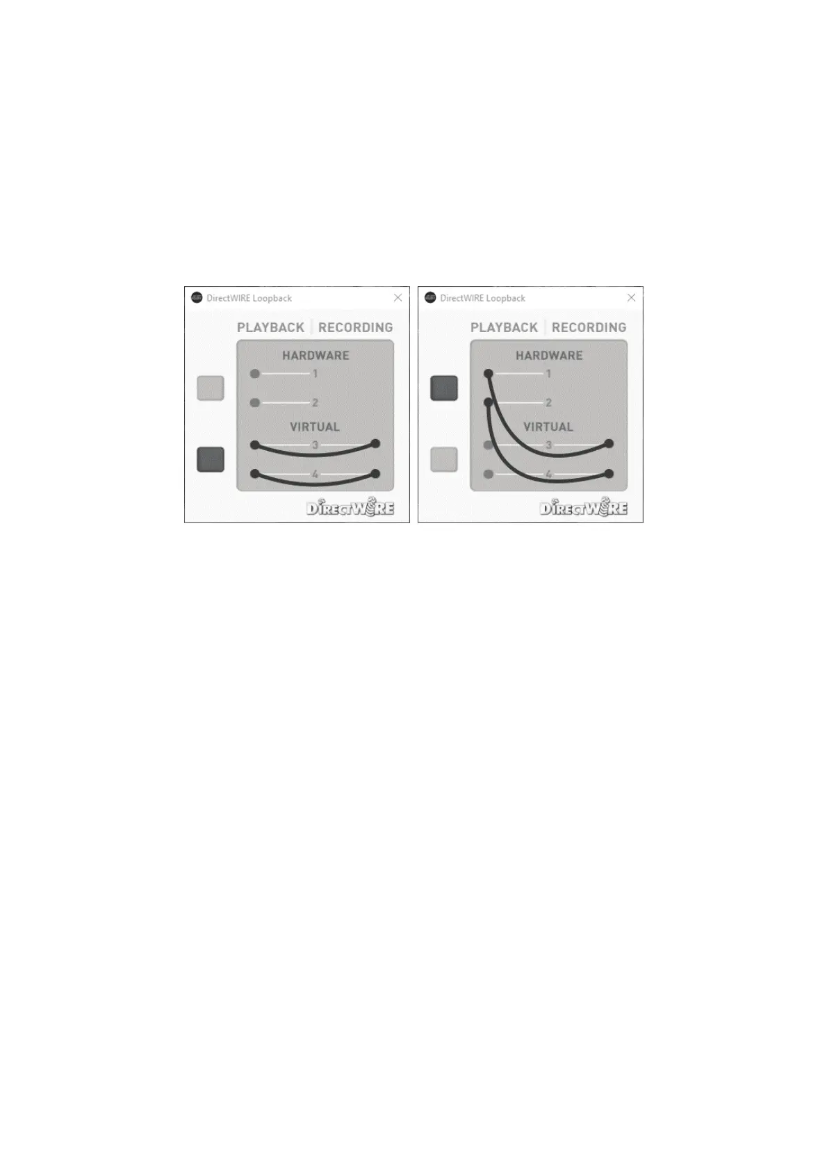 To open the related dialog, select the DirectWIRE > Loopback entry via the top menu of the control