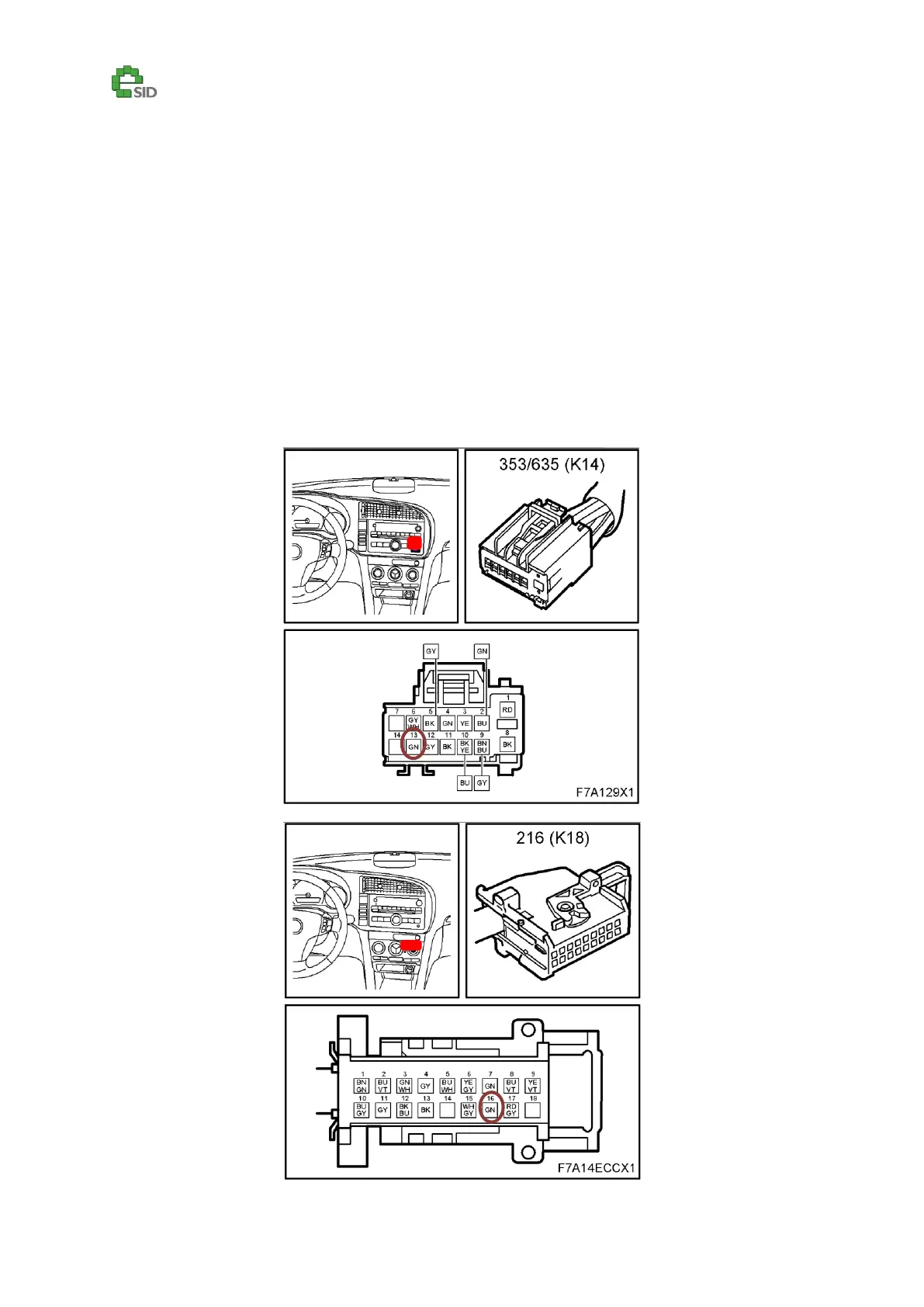 2. Splice new wire from ACC K18, Pin 16 (I-bus) and connect it to Radio K14 Pin13.