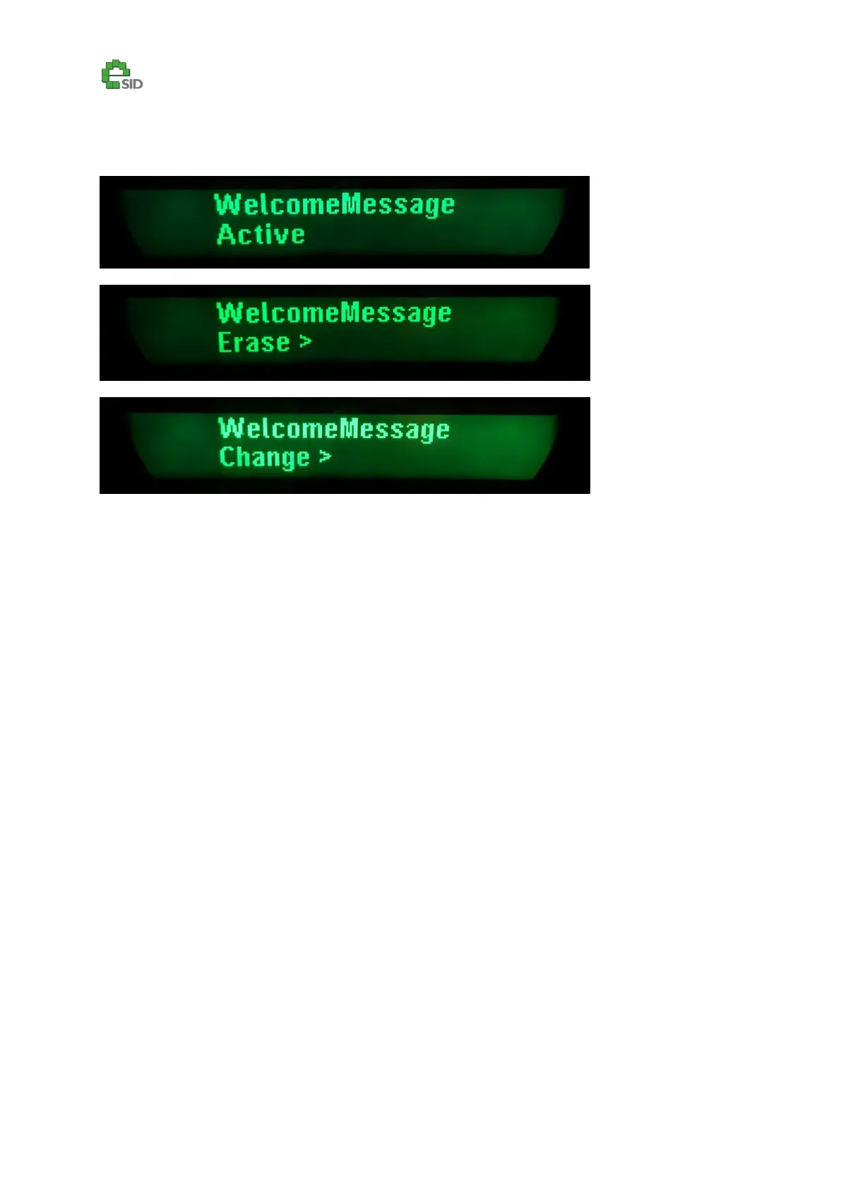The eSID3 welcome message can be activated/deactivated, erased or changed. Use the Info