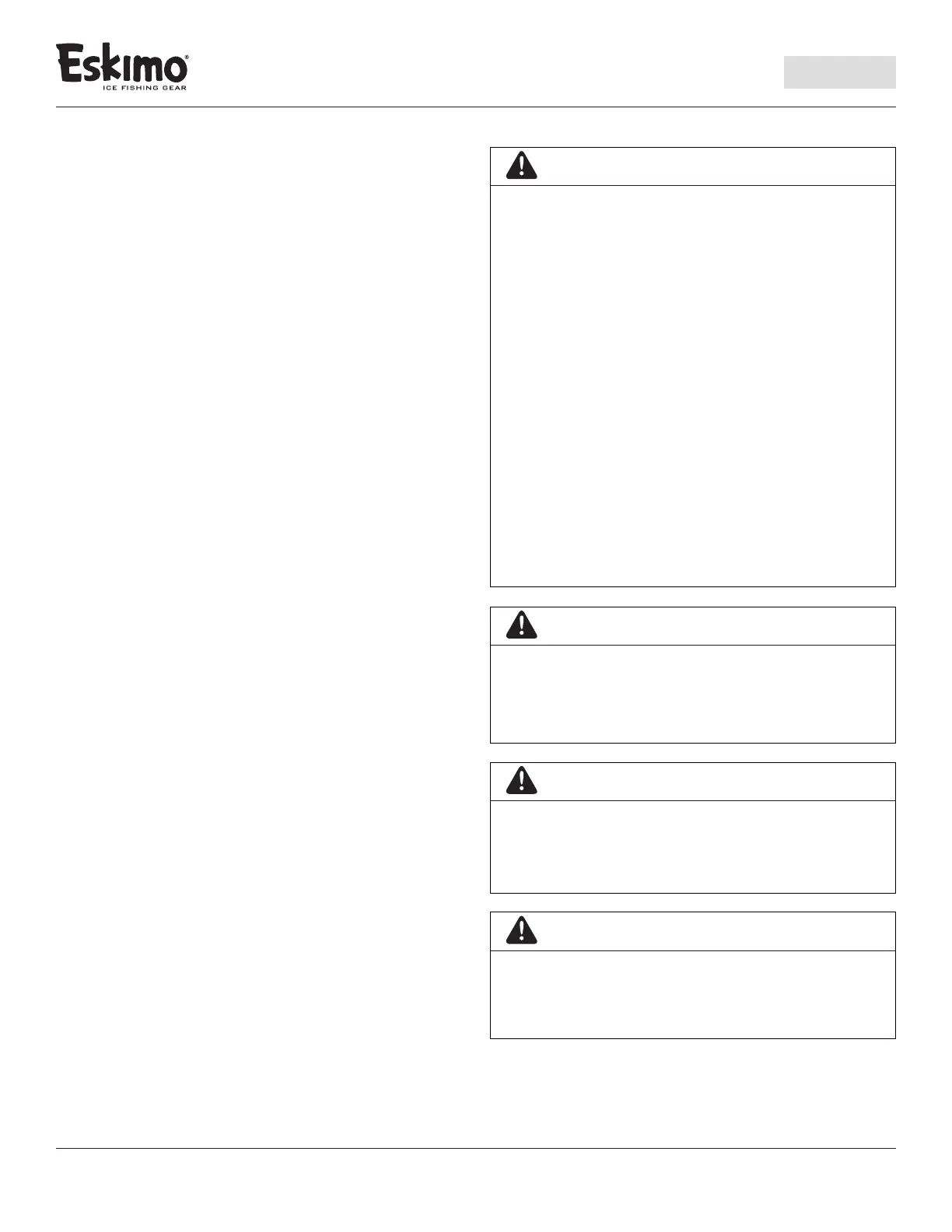 NEVER LEAVE THE ICE SHELTER UNATTENDED.