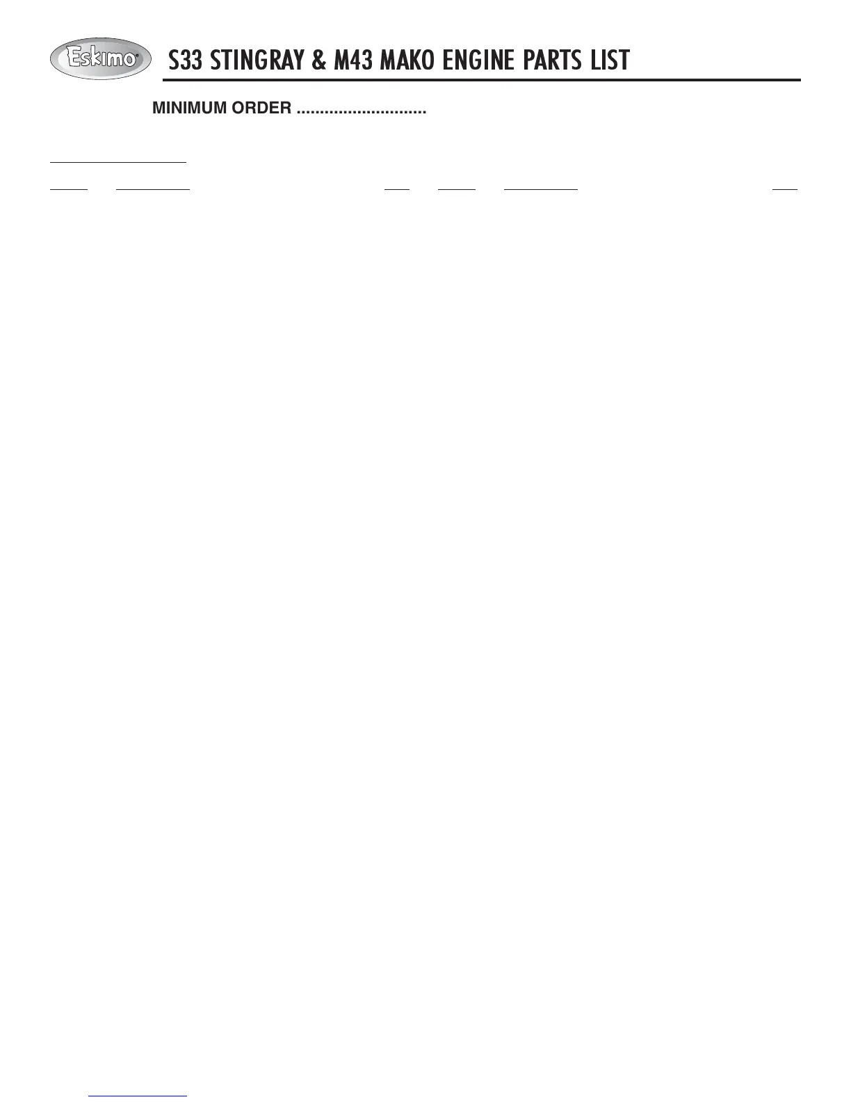 S33 STINGRAY & M43 MAKO ENGINE PARTS LIST