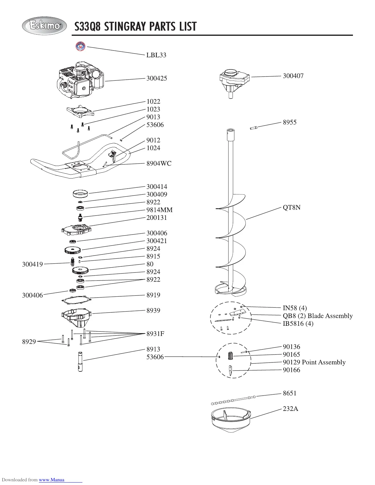 S33Q8 STINGRAY PARTS LIST