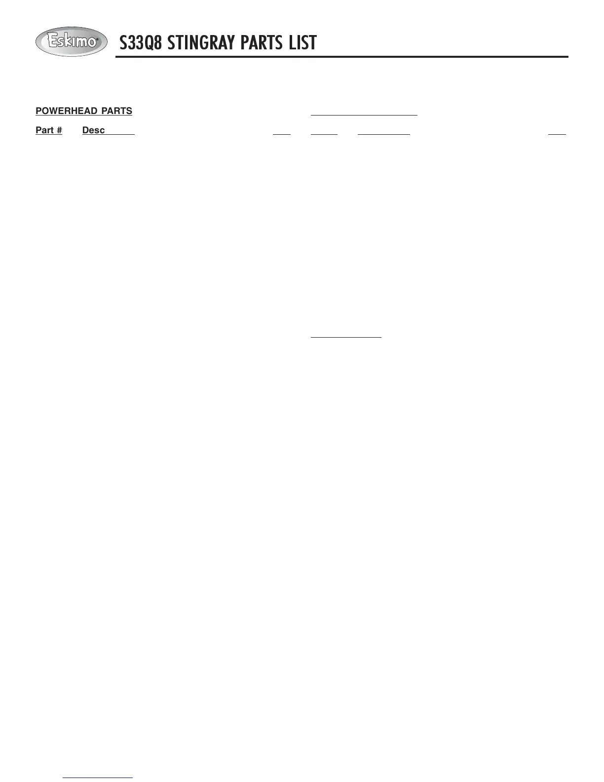 S33Q8 STINGRAY PARTS LIST