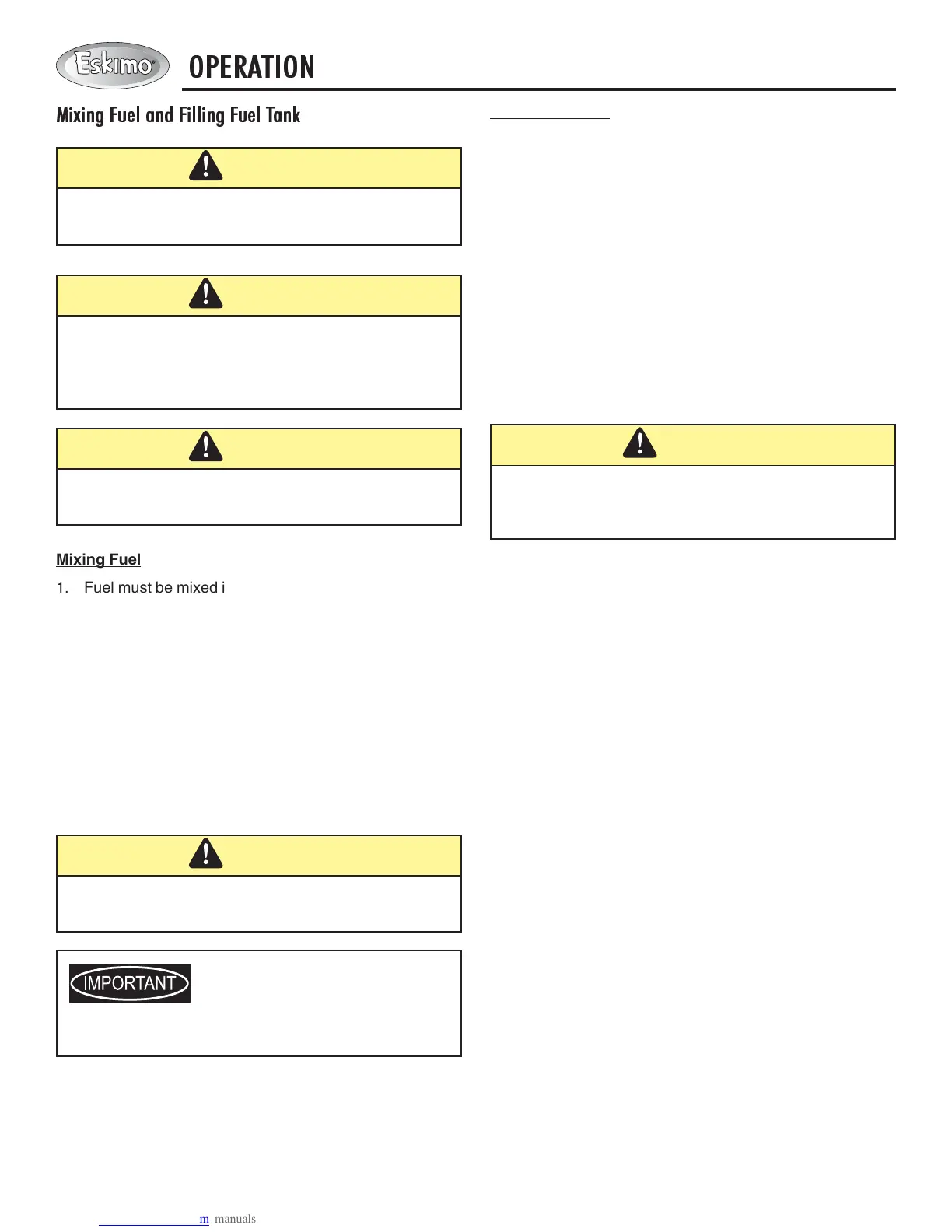 2. Fill certified fuel container 1/4 full of recommended fuel.