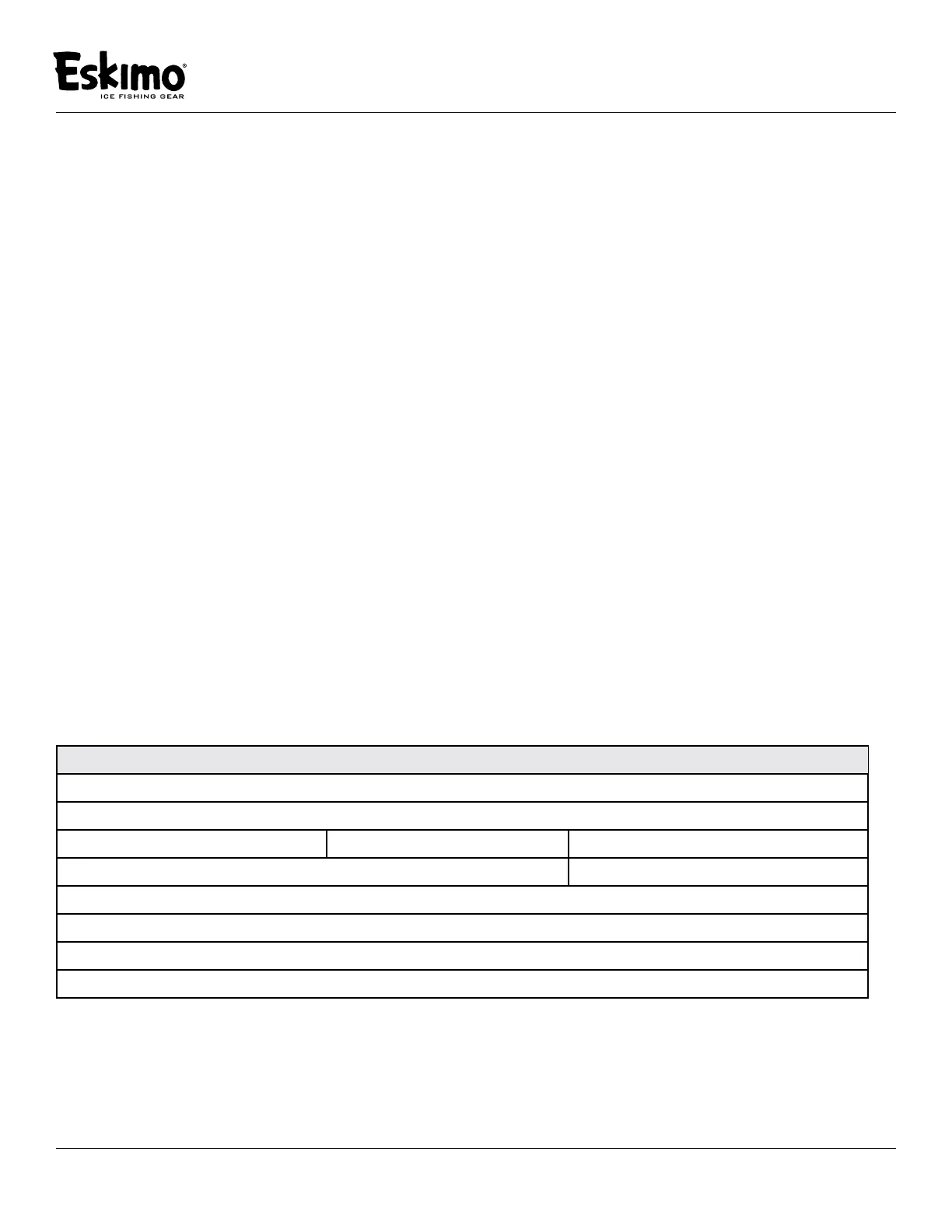 for purchasing an Eskimo® Power Ice Auger from Ardisam, Inc. We have worked to ensure that the ice auger meets high standards