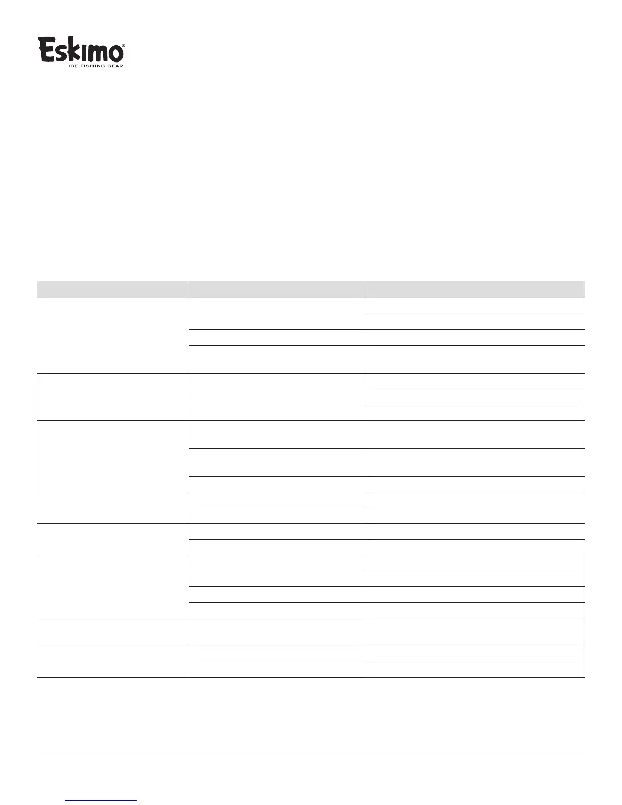 Check for parts online at www.GetEskimo.com or call 800-345-6007 M-F 8-5 CDT