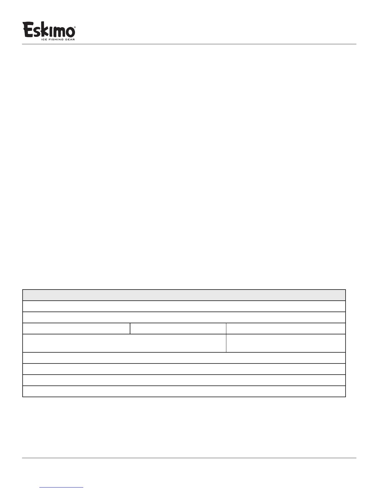for purchasing an Eskimo® Power Ice Auger from Ardisam, Inc. We have worked to ensure that this ice auger meets high