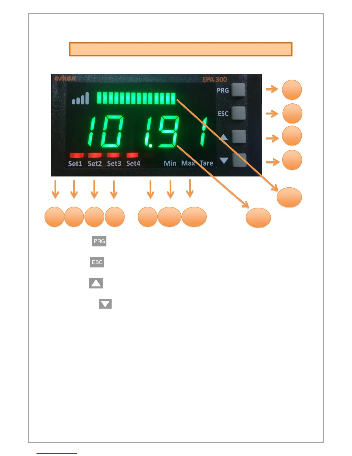 1) PRG ( ): Programming and Enter key. It is used to enter the menus or