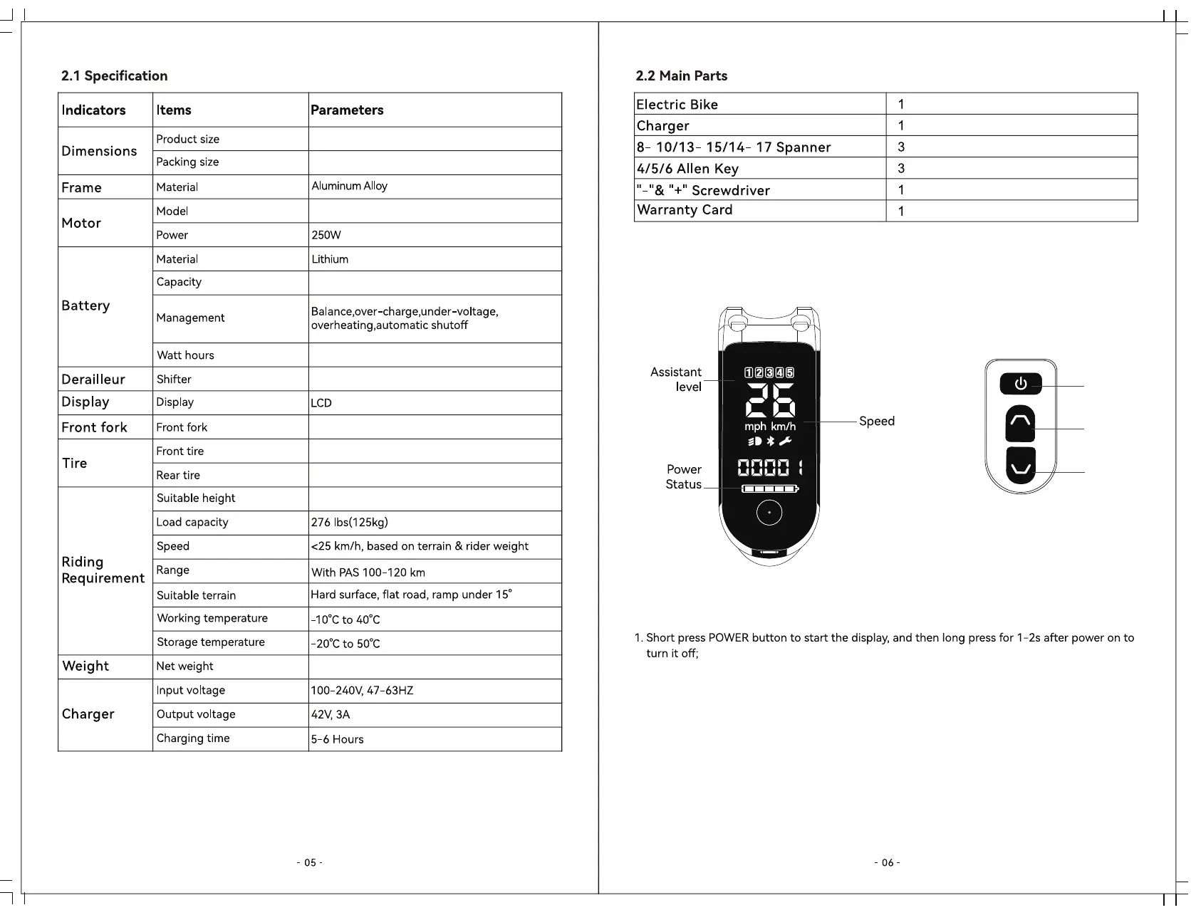 4. After powering on, press and hold the "-" button for more than 5s to enter 6 km/h cruise.