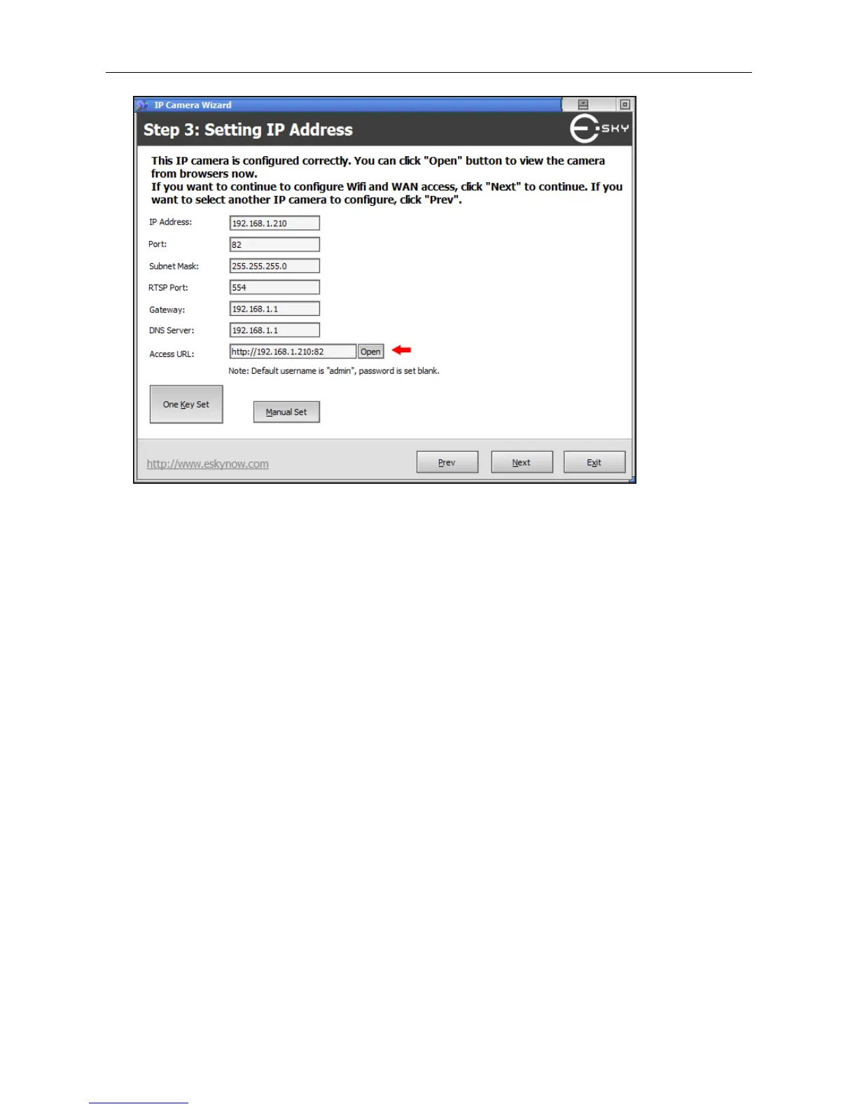 If the IP address is set correctly, you will see black words “The camera can be accessed, click ‘Open’