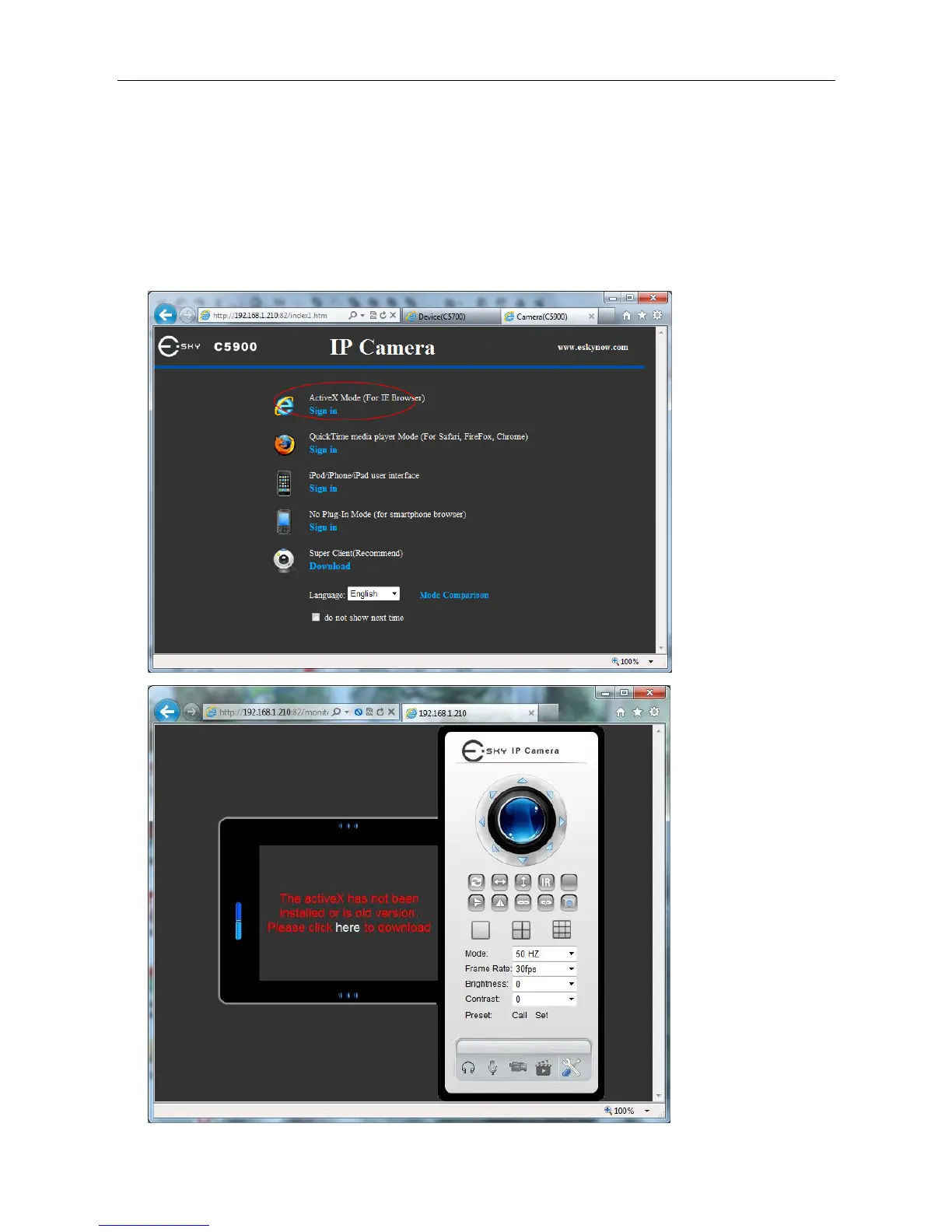 Click "here" to download activeX and install the activeX , then press "F5" to refresh the page.