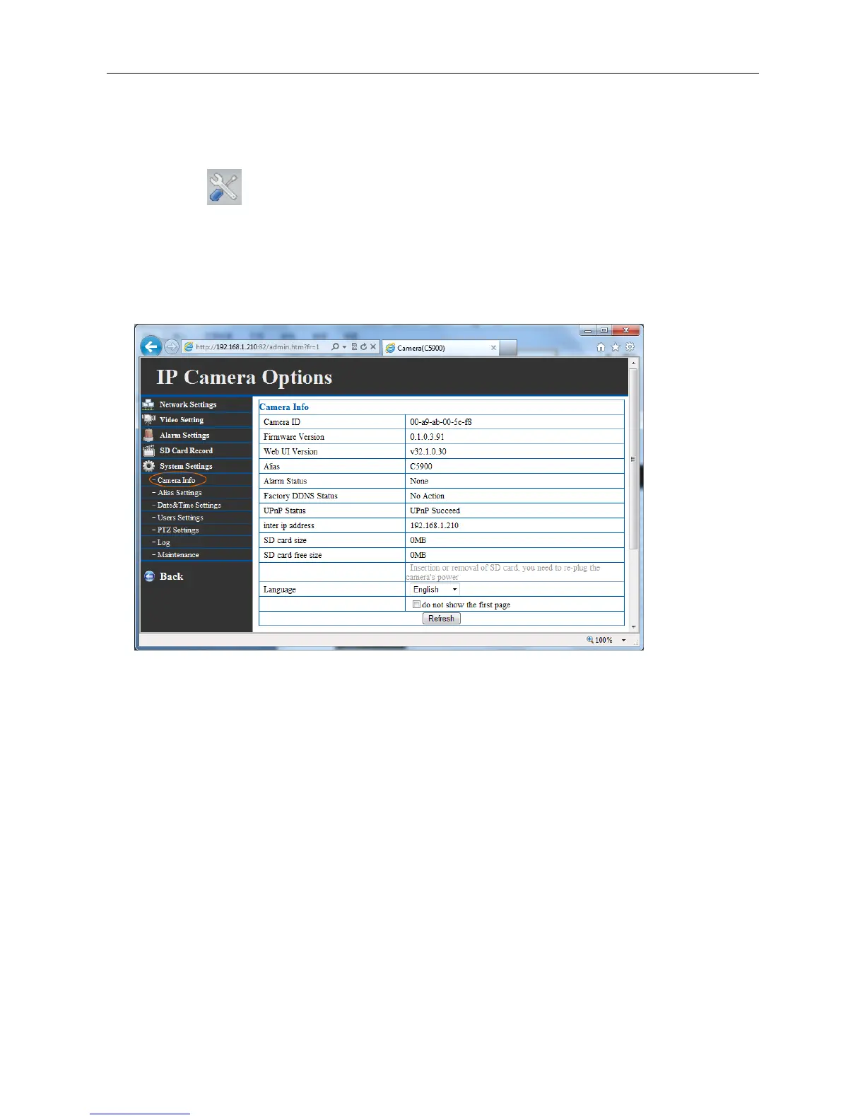 Click this icon at the lower right corner of the camera's Web Configuration page to enter into