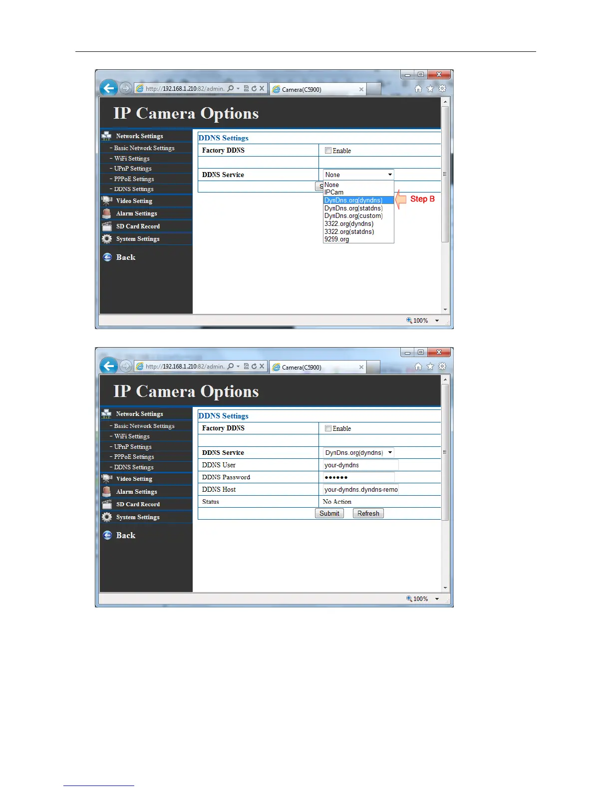 Set the IP camera's picture size, rate mode, key frame , picture quality and bit rate.