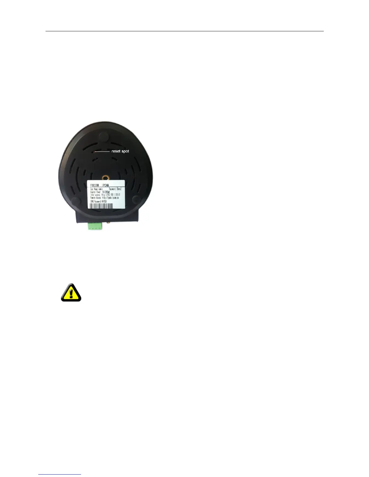 There is a reset hole at the bottom of the Camera. It is used to reset the system or restore the factory
