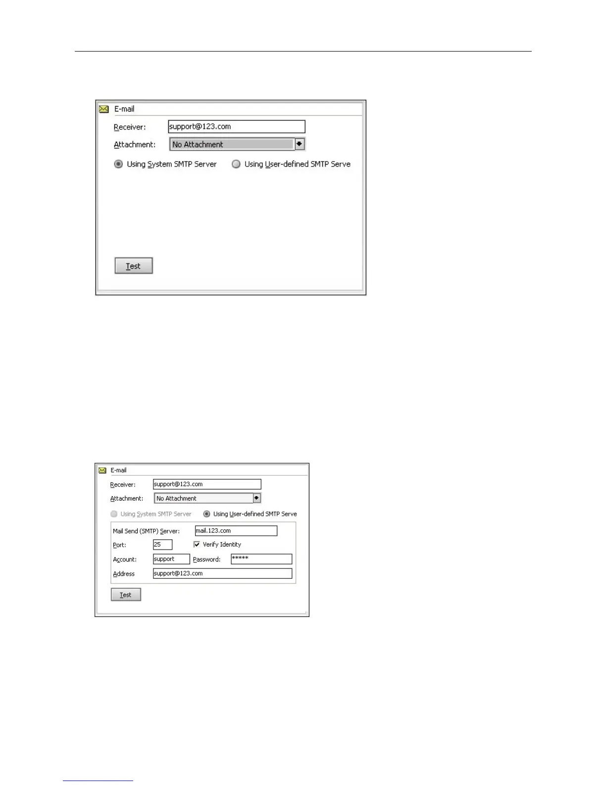 Test: Click test button, the program will send a testing email, users can check whether it is correctly
