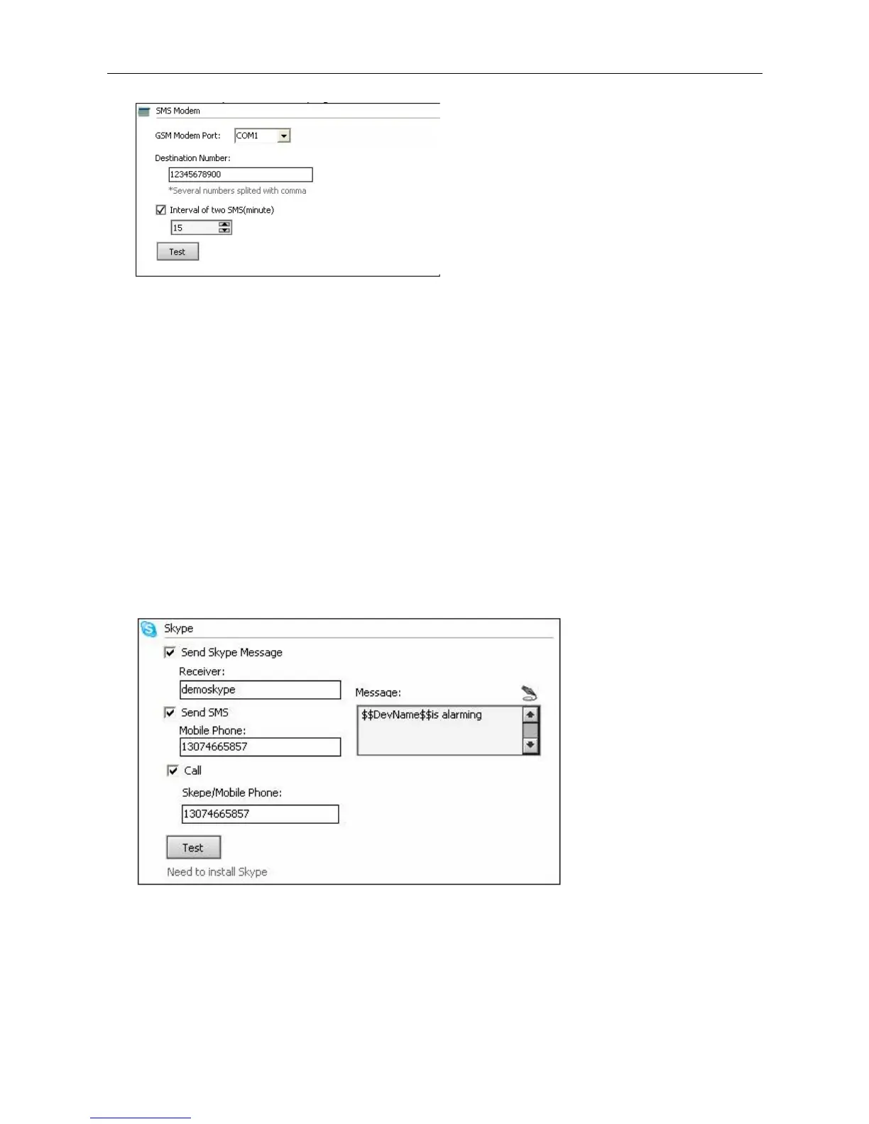 the program will activate the Skype interface to send SMS messages. If Skype is not running, the