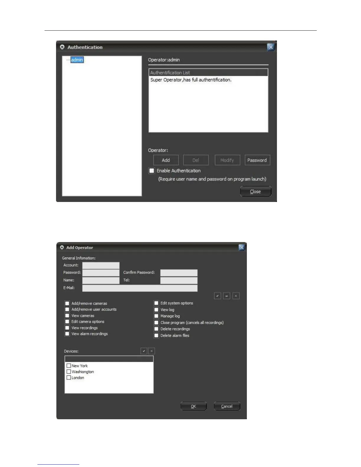 After selecting Enable Authentication, all the operation action will ask for authority verification. In