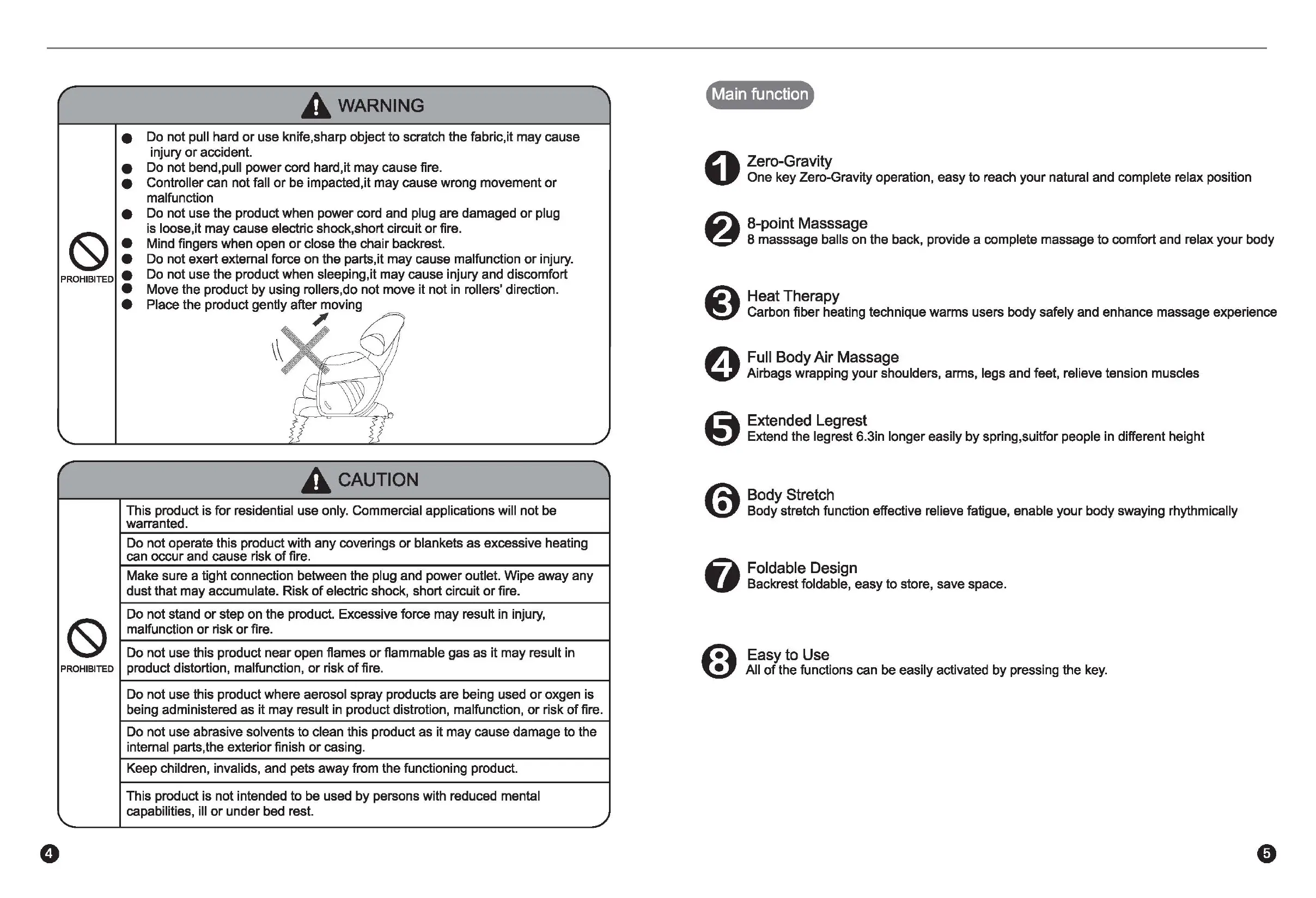 One key Zero-Gravity operation, easy to reach your natural and complete relax position