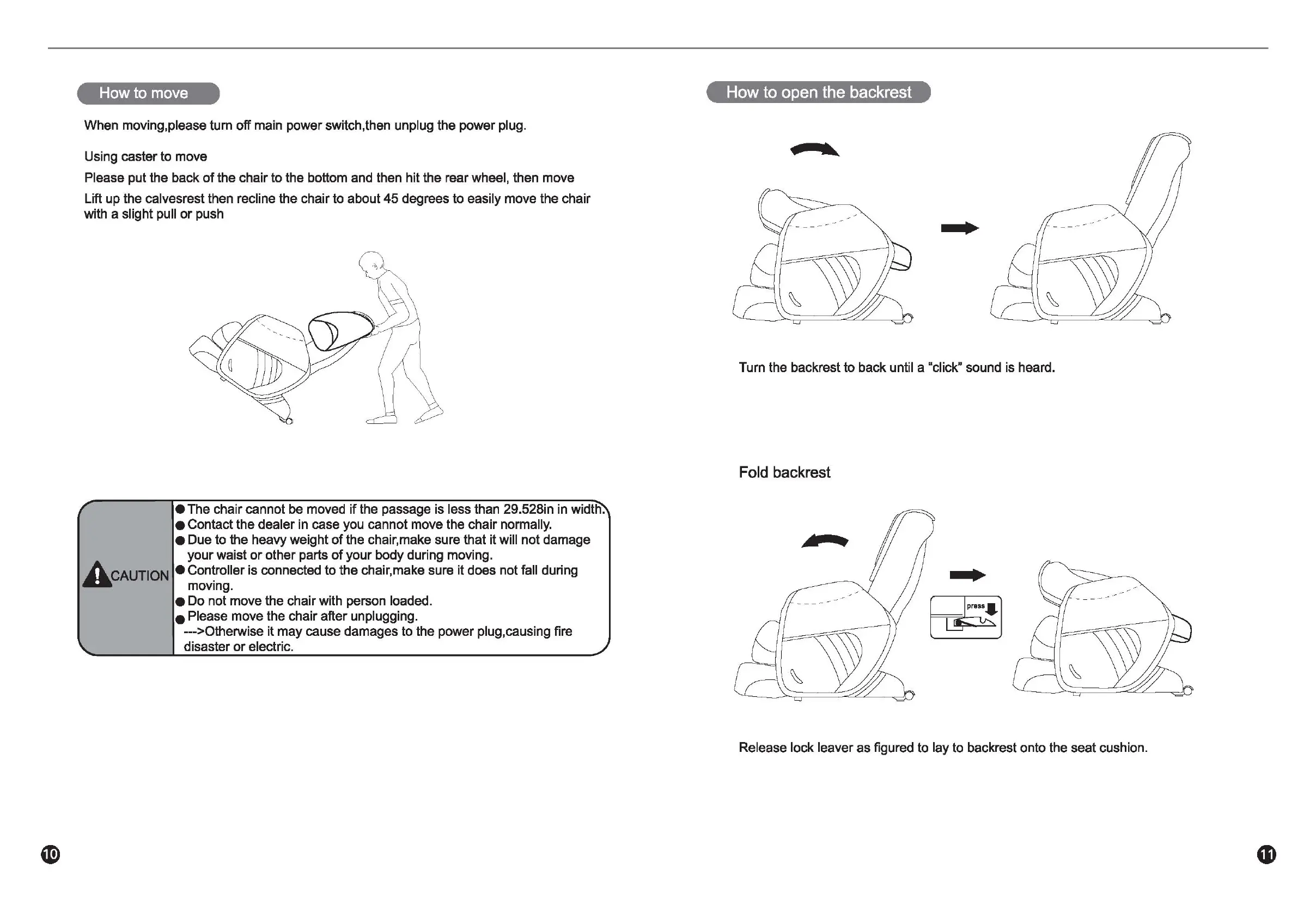 CAUTION • Controller is connected to the chair, make sure it does not fall during