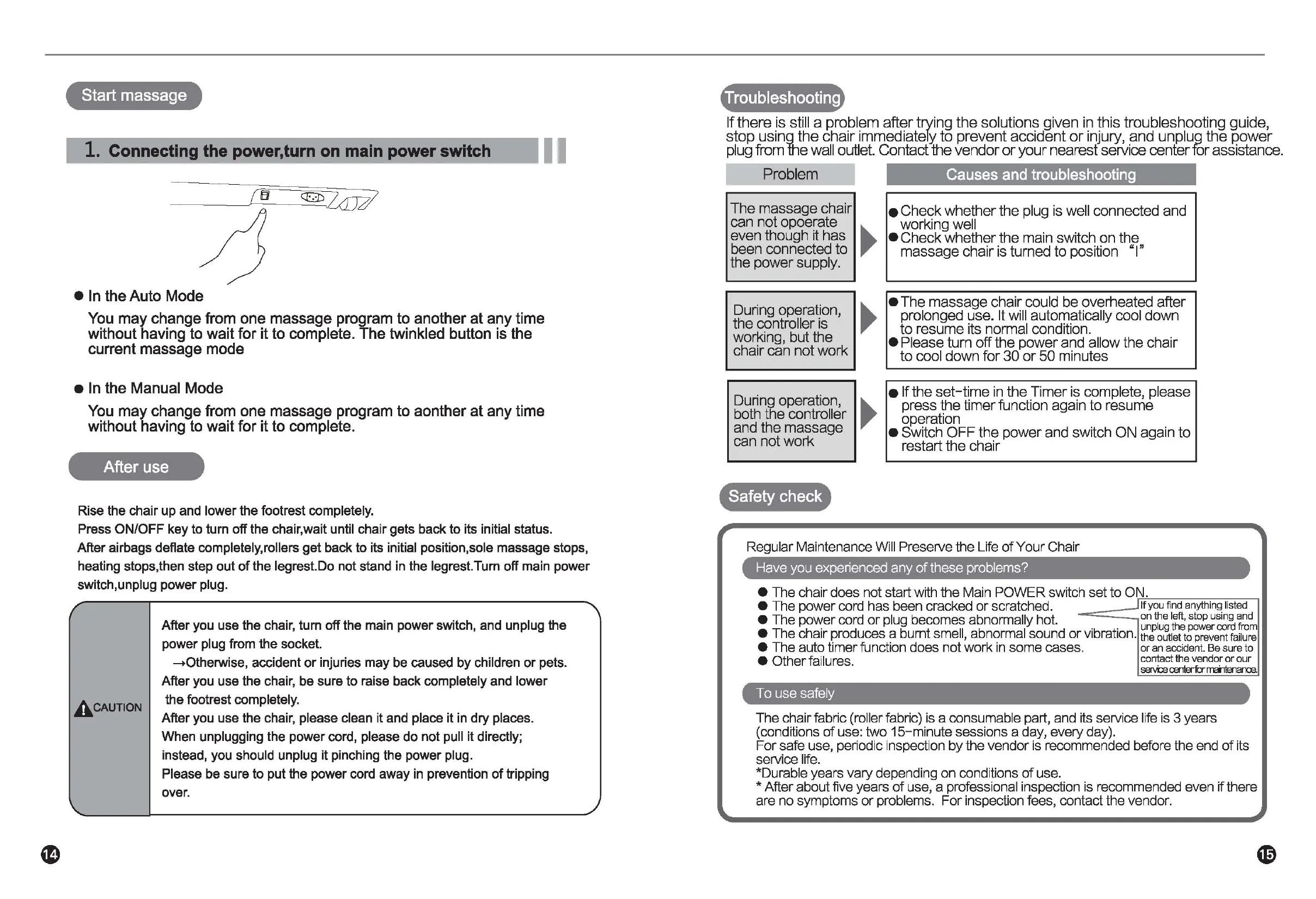 • Please turn off the power and allow the chair