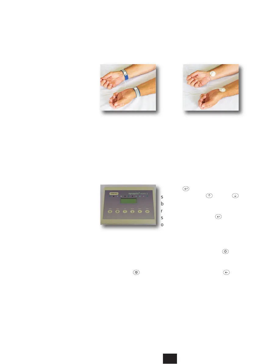 To start a treatment, attach one wrist cuff to the left wrist and