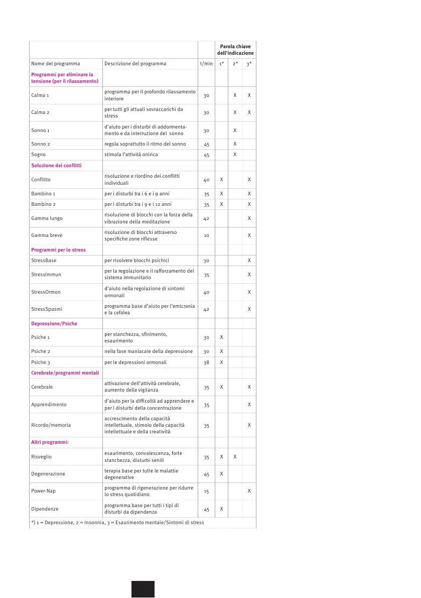 *) 1 = Depressione, 2 = Insonnia, 3 = Esaurimento mentale/Sintomi di stress