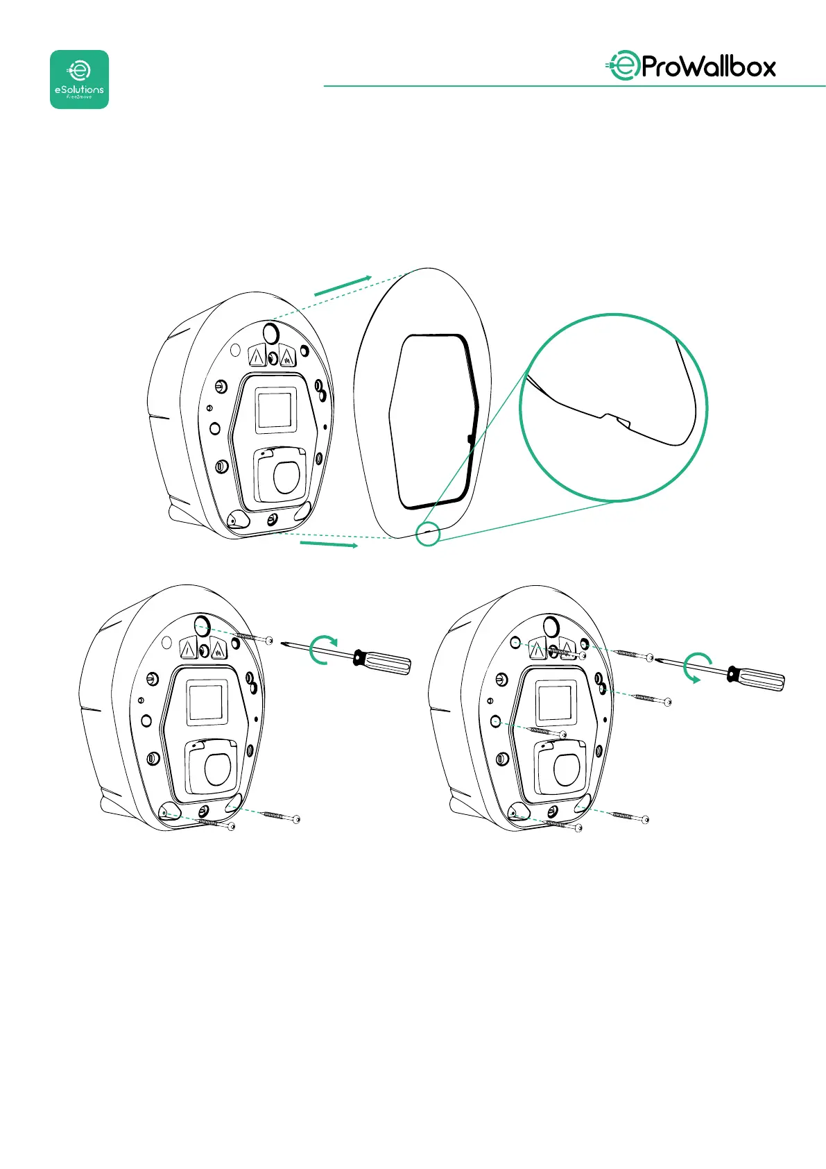 • Zamocuj urządzenie eProWallbox wkładając 3 śruby do kołków w ścianie i