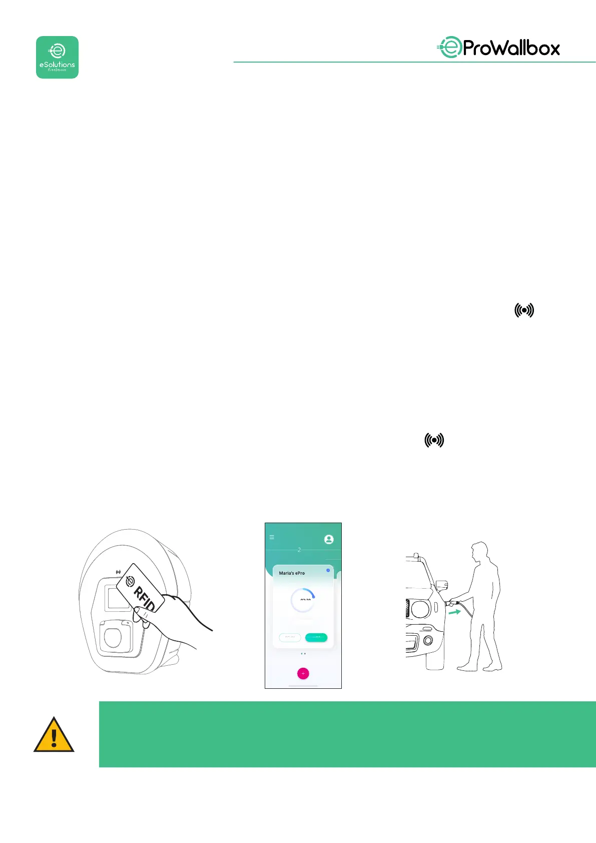 • PassezlacarteRFIDassociéeau-dessusdulecteurdelaeProWallbox ou;