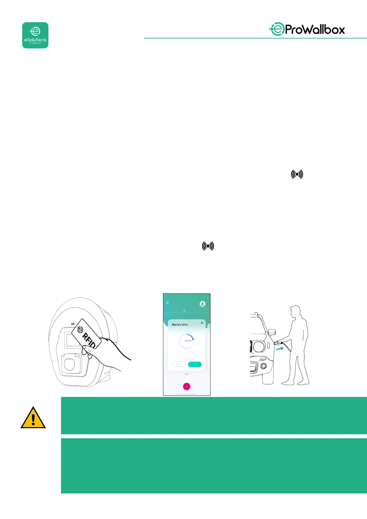 • Helyezze az RFID-kártyát az eProWallbox olvasójához , vagy ha