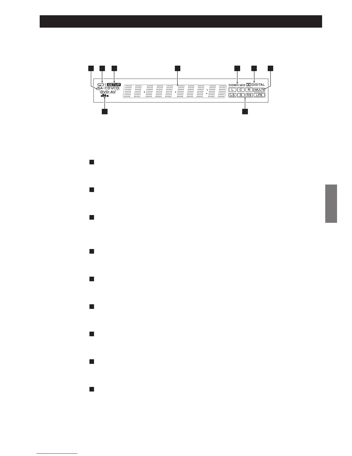 S’allume pour signaler que de l’audio Dolby Digital est reproduit.