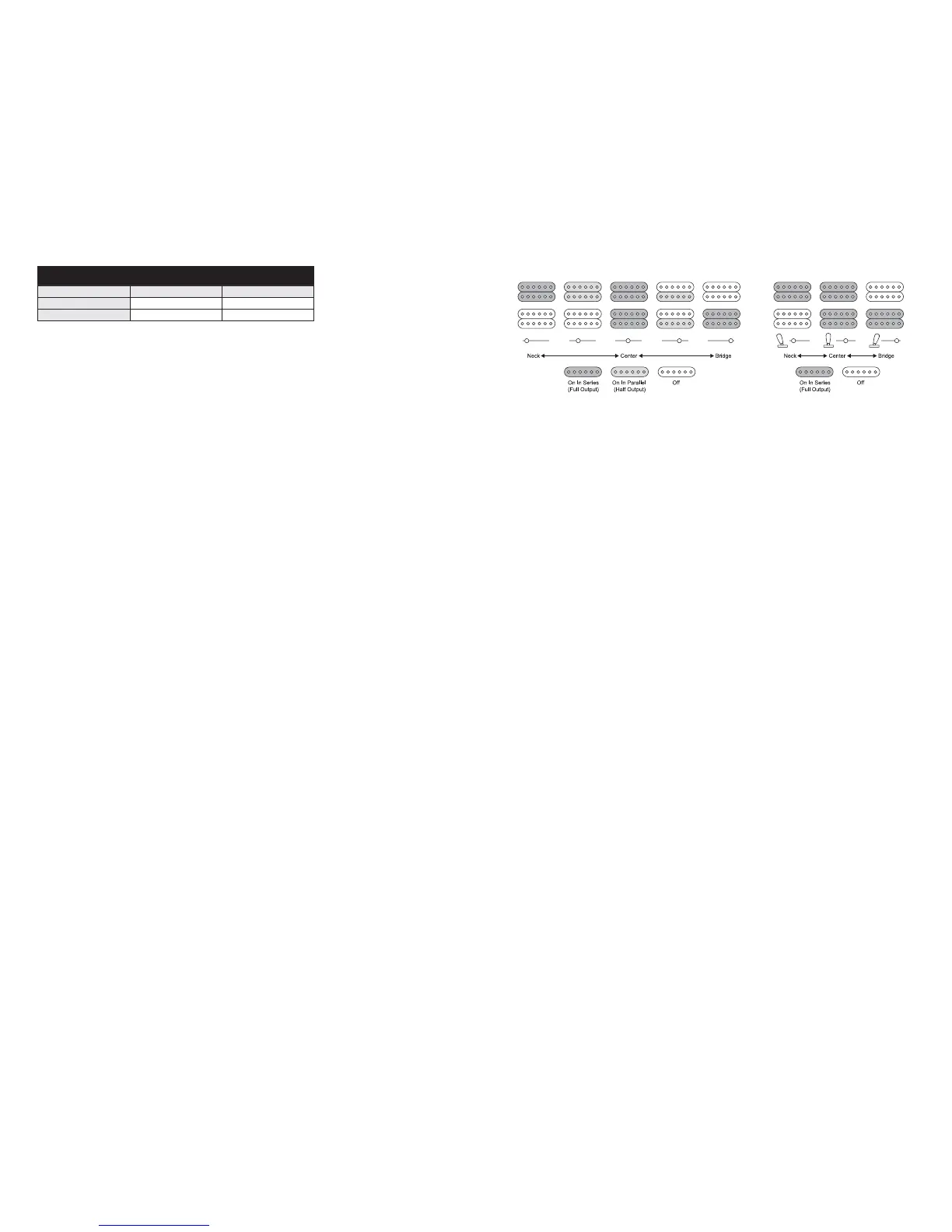engaged. When in the “up” position, one coil from the pickup will be turned off making the output now